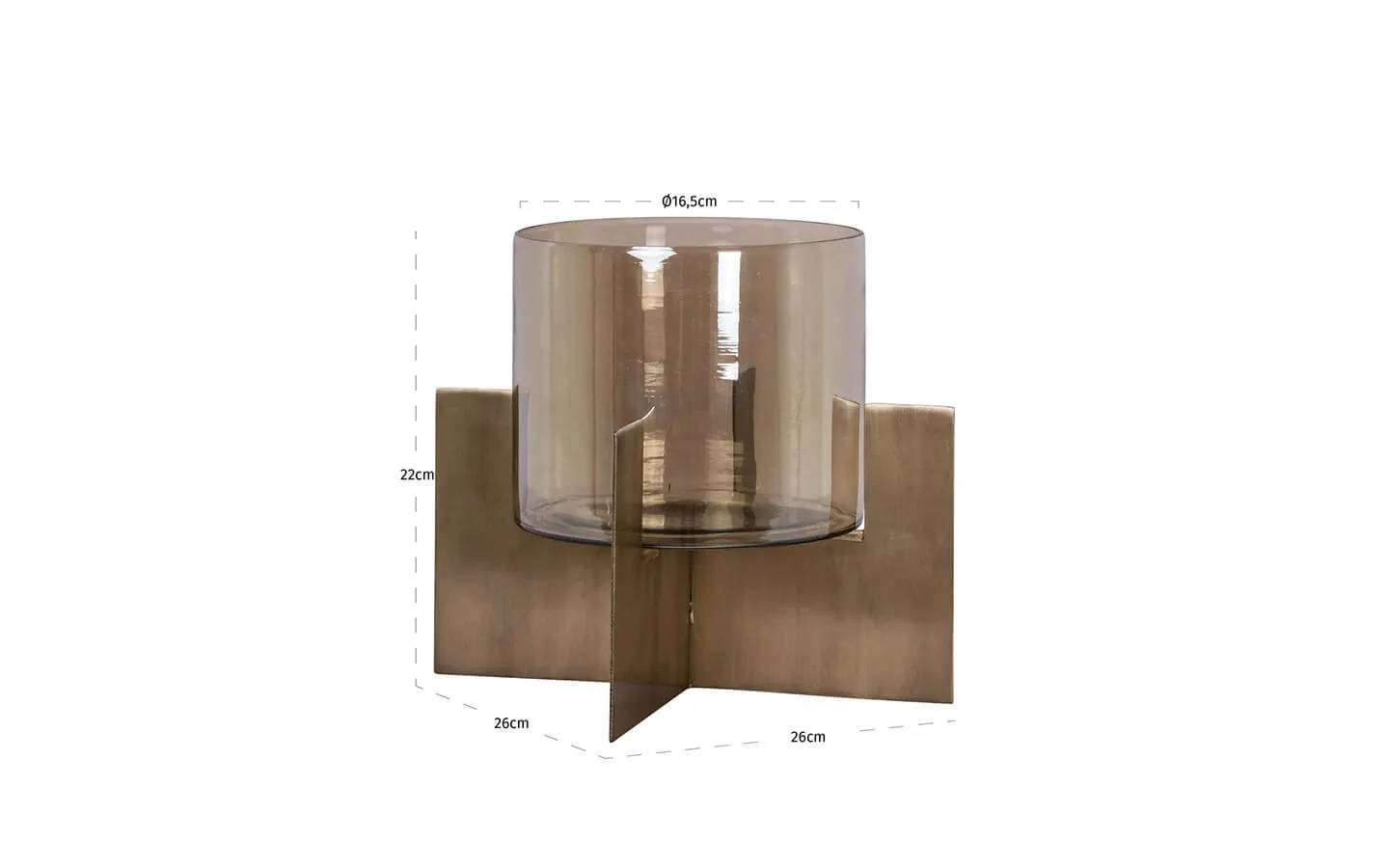 RESA GOLD SMALL е фенер от колекцията на бранда Richmond Interiors. Фенерът е изработен от стъкло. Основата е изработена от метал – финиш Gold. Размерите са см. 26/26/22H.