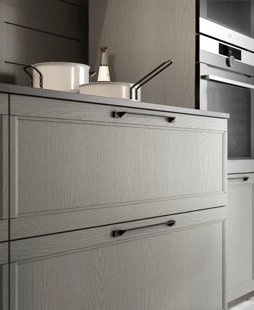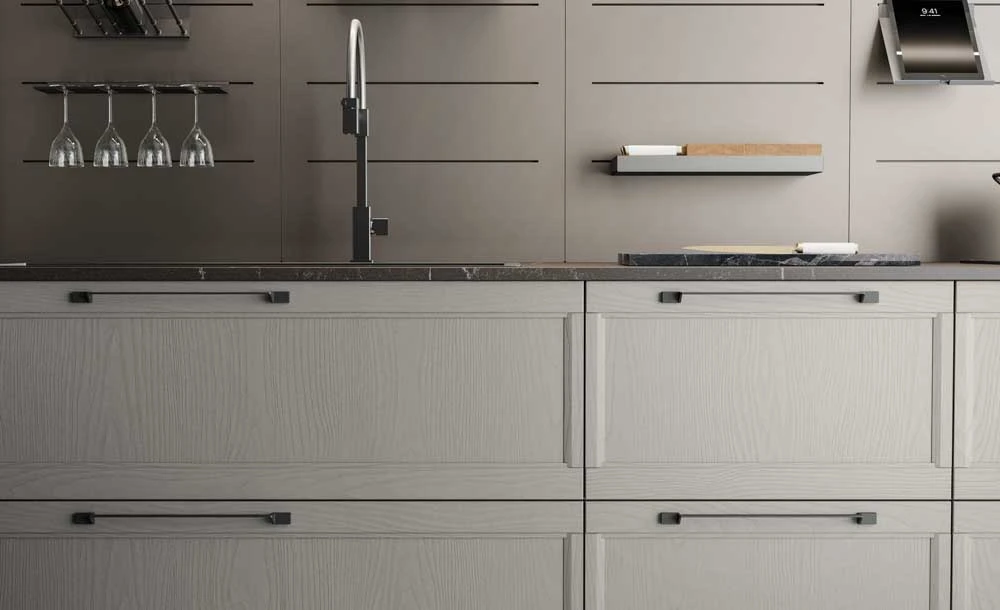 Вратичките на кухнята FLAVOUR могат да бъдат както със скрити дръжки, така и с вкопани или външни.