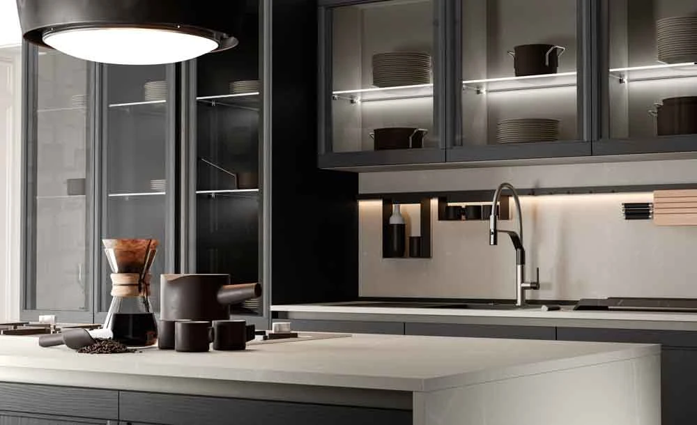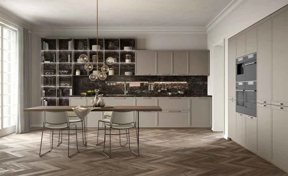 FLAVOUR е съвременна кухня, която може да бъде интерпретирана в съответствие с различни стилове, благодарение на широката гама от врати и покрития. Кухнята FLAVOUR от италианския производител LUBE Cucine адаптира естетиката си към домашната среда, приемайки класически или съвременен стил.