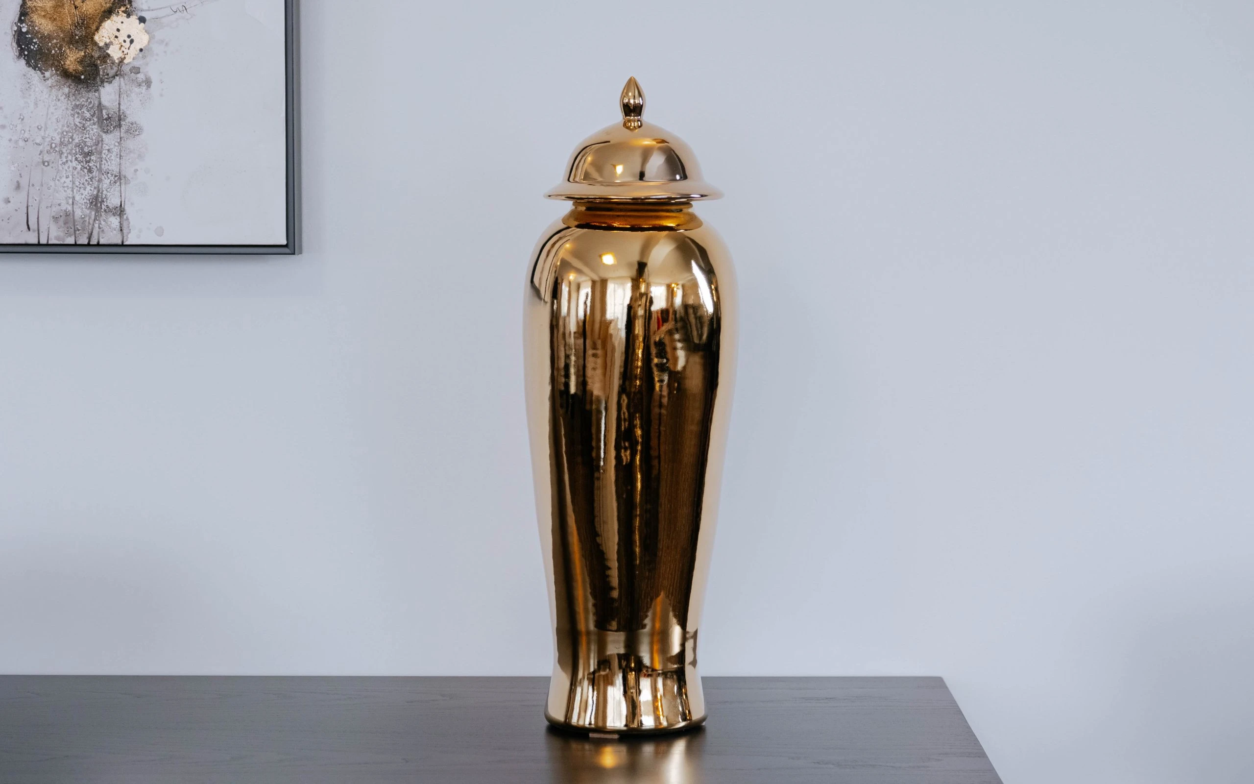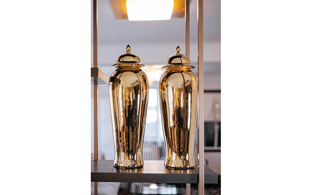 Вазата GOLD MS е част от колекцията дизайнерски предмети ASIATIDES. Керамичната декоративна ваза е със златен огледален финиш.