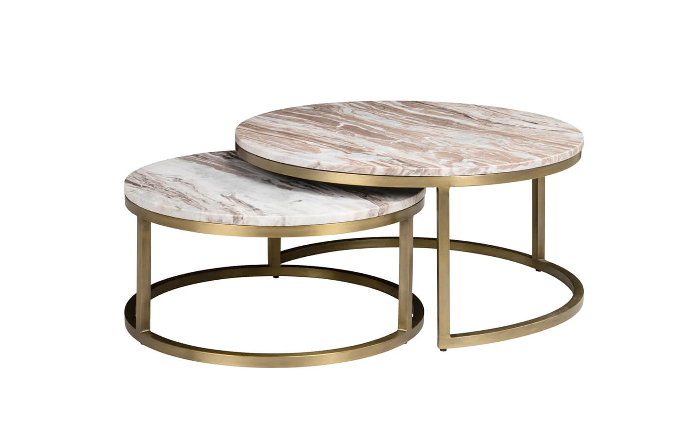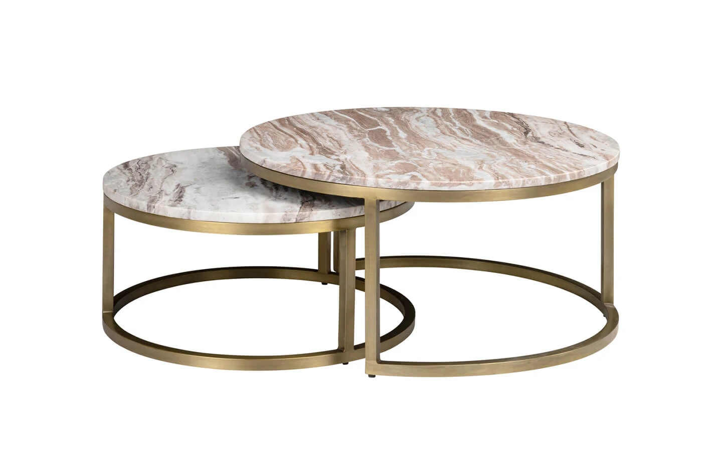Сет от две холни маси BOTTEGA BLUSH BEIGE от колекцията на нидерландския производител Richmond Interiors. Структурата е изработена от метал. Плотът е изработен от мрамор Toronto – финиш Blush Beige.