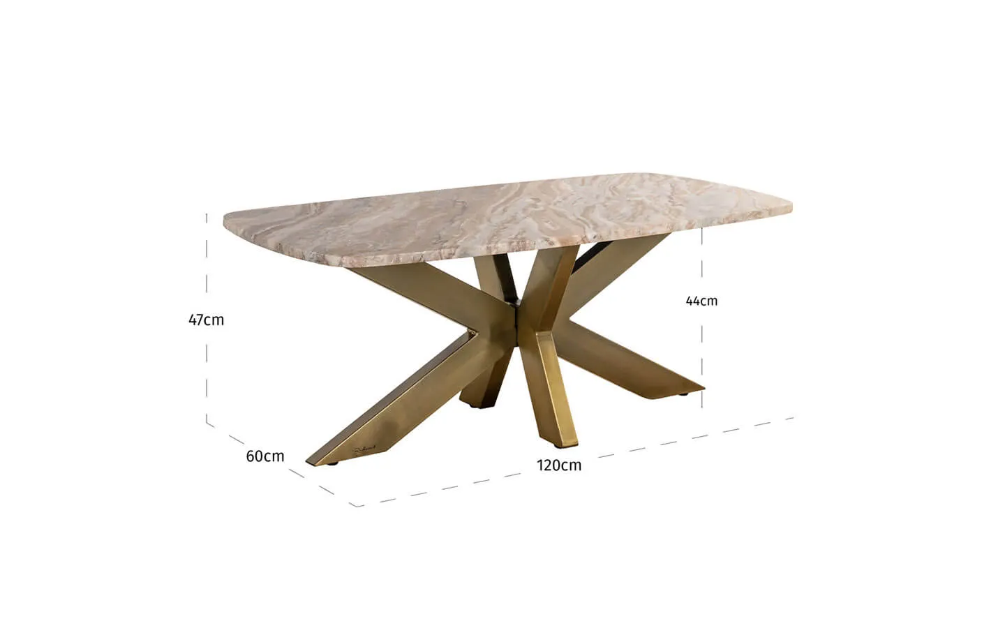 BOTTEGA BLUSH BEIGE е холна маса от колекцията на нидерландския бранд Richmond Interiors. Основата е изработена от метал – финиш Brass. Плотът е изработен от мрамор Toronto – финиш Blush Beige.
