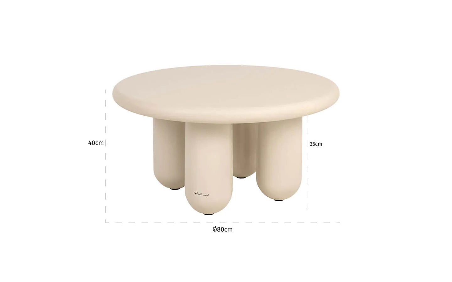 CALMA BEIGE Ø80 е холна маса от колекцията на нидерландския бранд Richmond Interiors. Холната маса е изработена от метал и MDF.