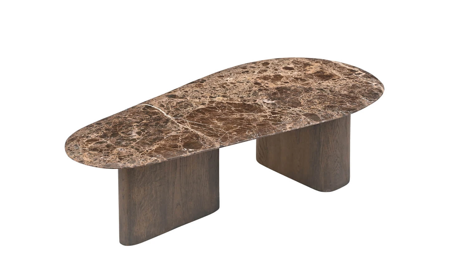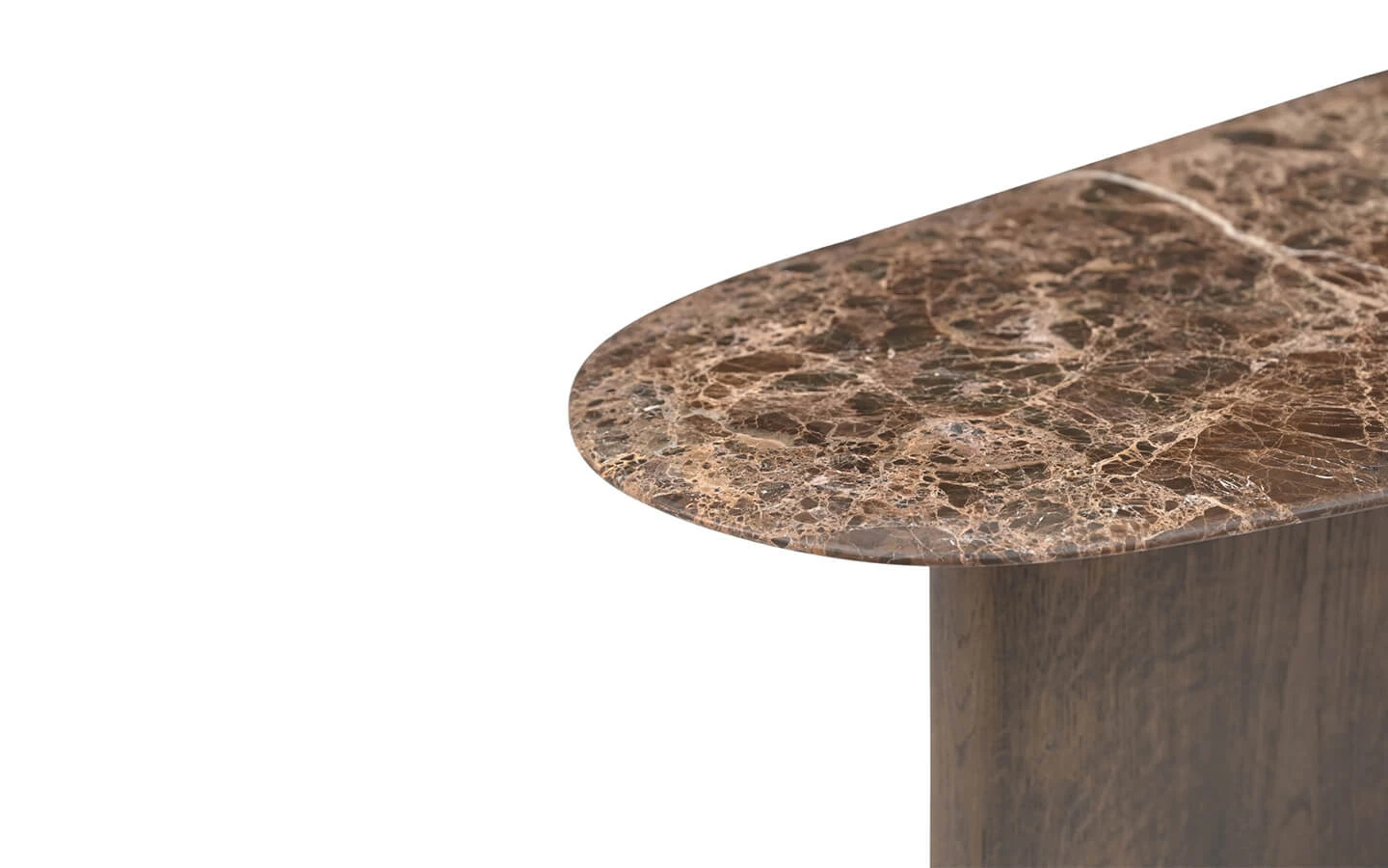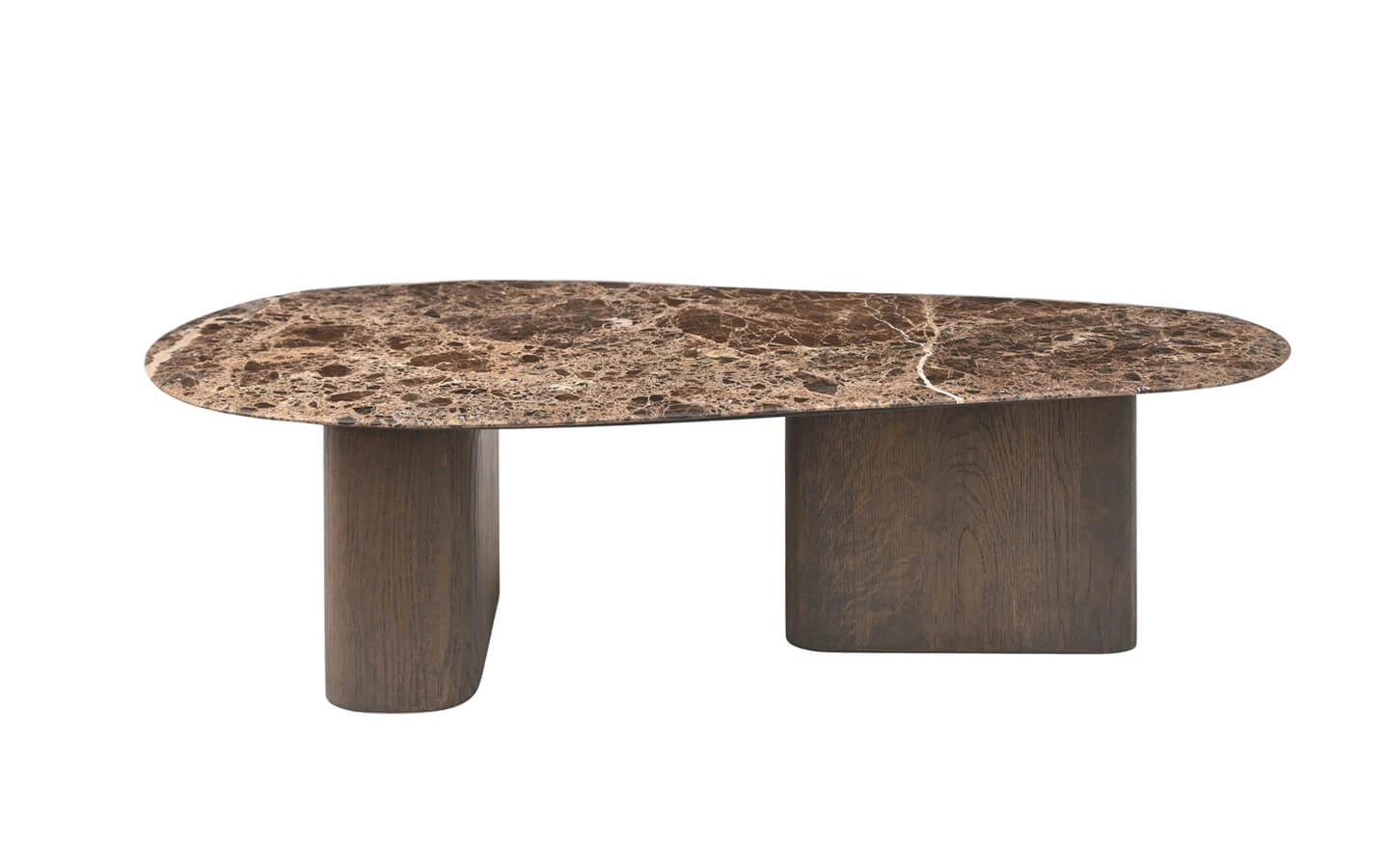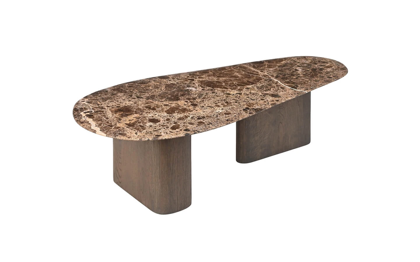 Сет от две холни маси CASTELLO SMOKED CHARCOAL от колекцията на нидерландския производител Richmond Interiors. Основата е изработена от дърво. При едната маса плотът е изработен от дърво – финиш Smoked Charcoal. При втората плотът е изработен от мрамор Emperador.
