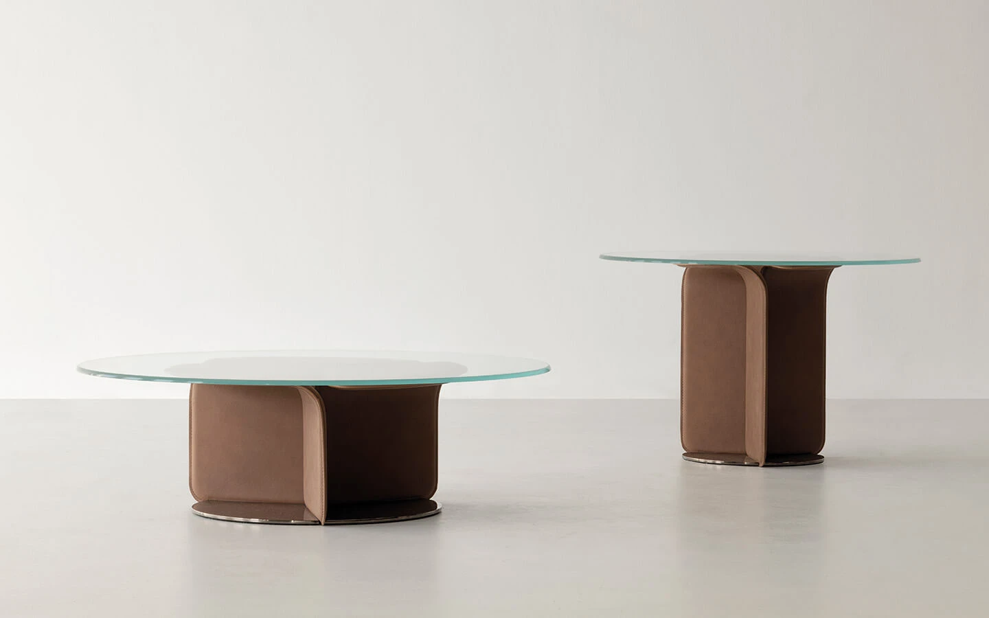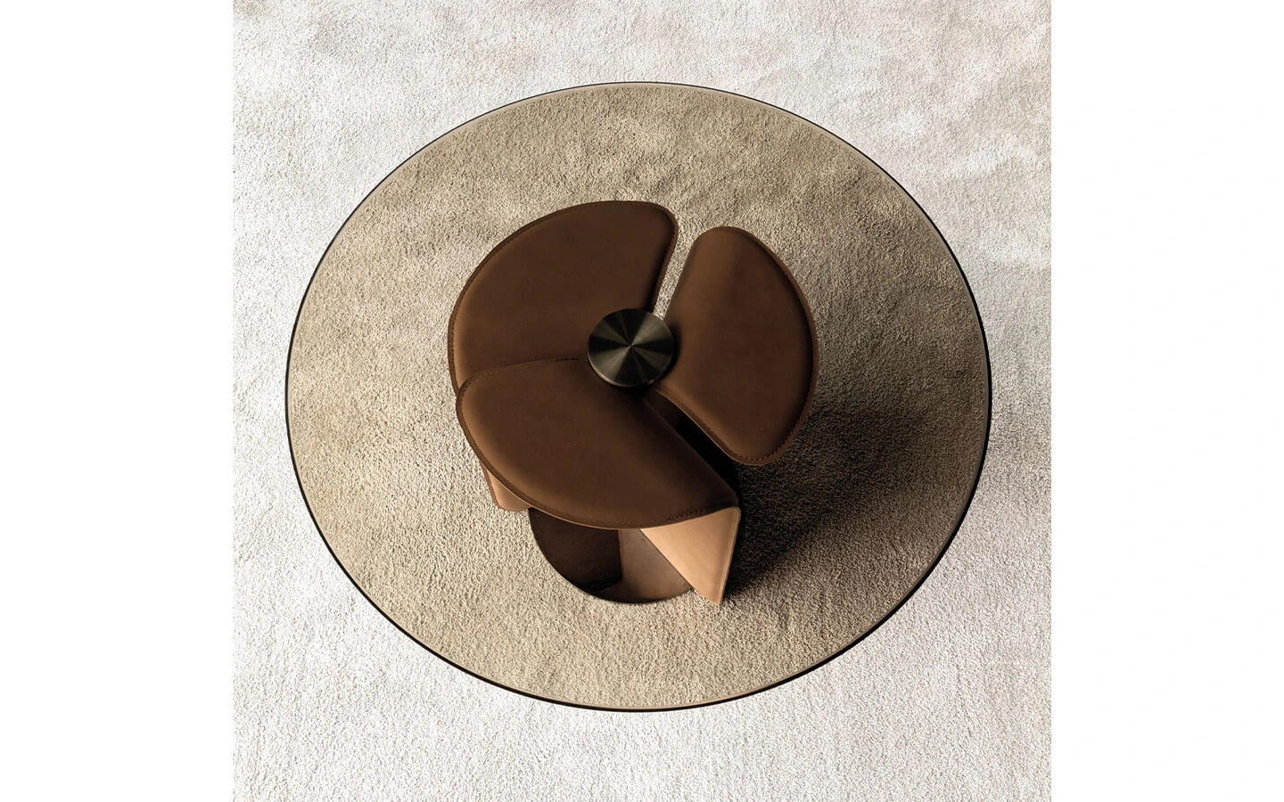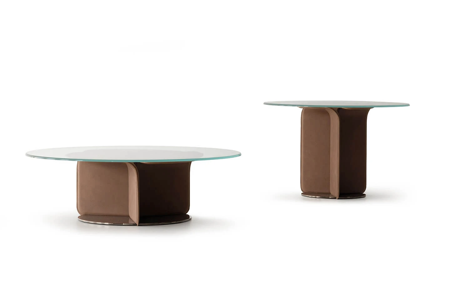 Посочената цена е за маса с размери см. Ø80/52H., със структура, тапицирана в кожа Soffio.