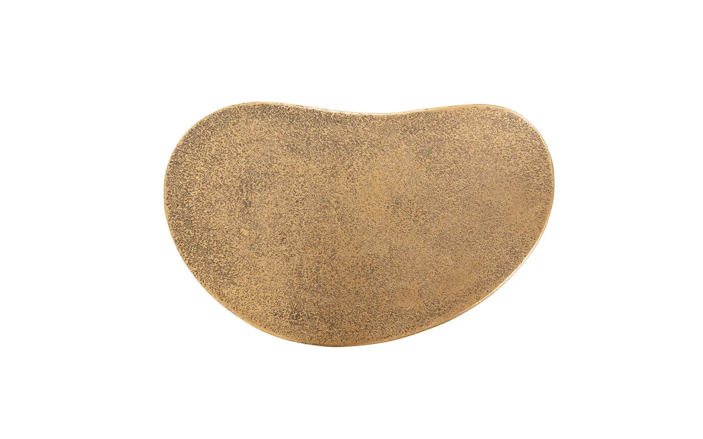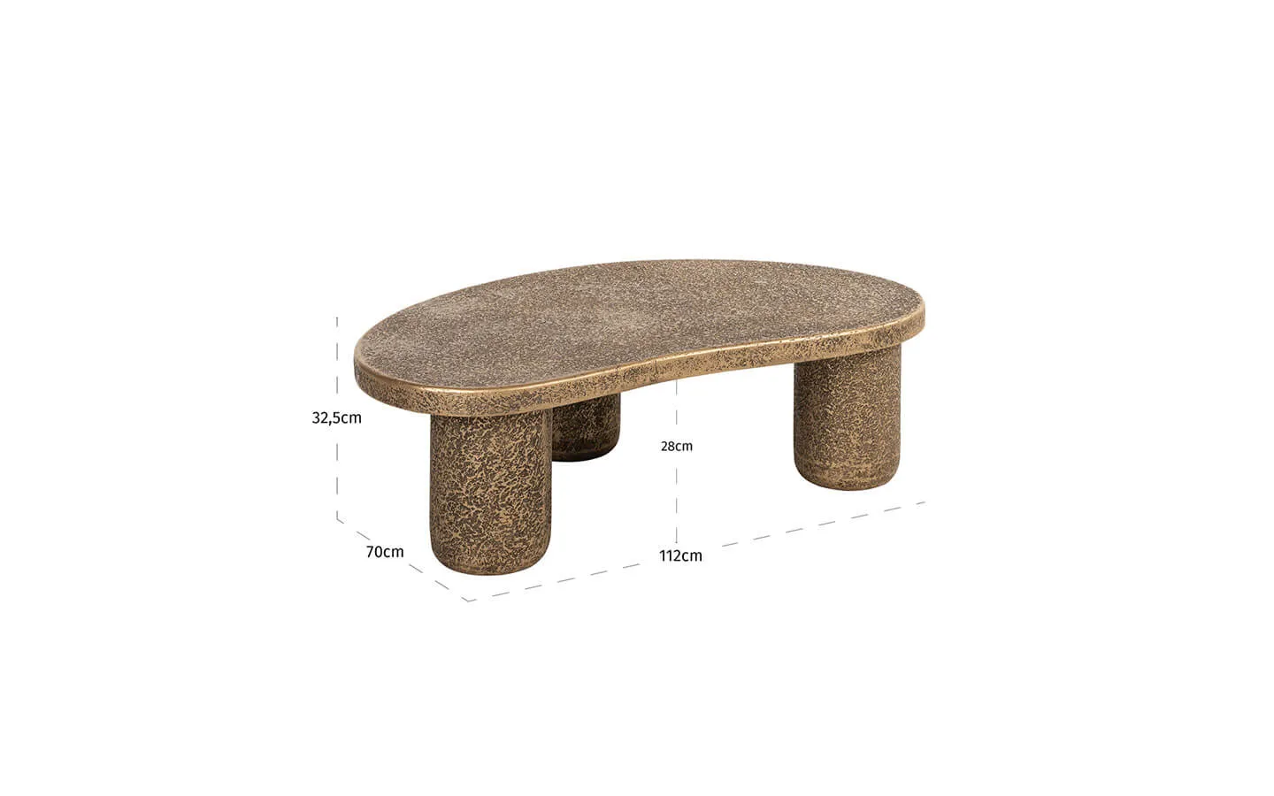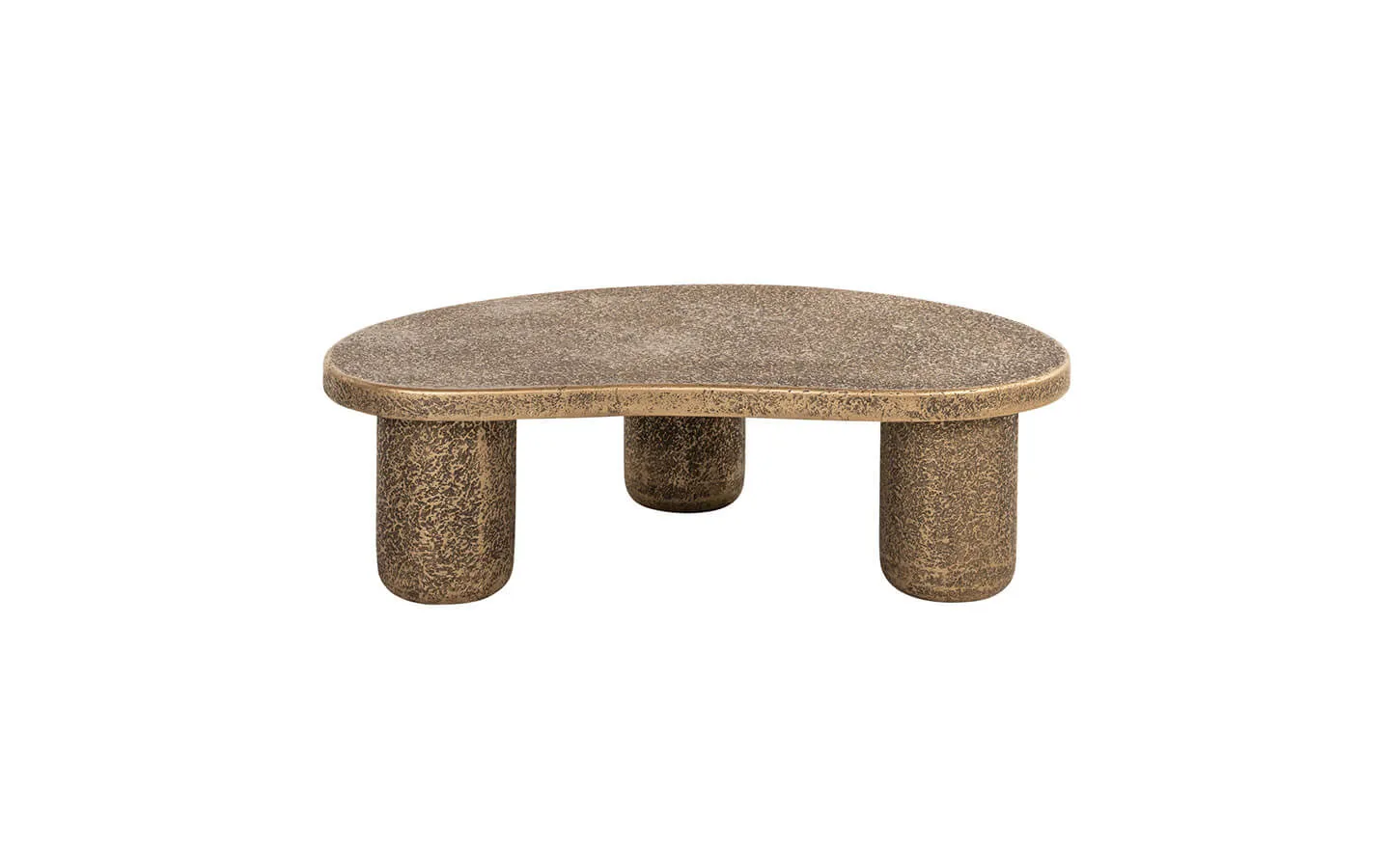 KENOBI BRONZE от RICHMOND INTERIORS е впечатляваща холна маса с артистичен силует и изразителен характер. Плотът ѝ е оформен в органична, леко бъбрековидна форма, която придава мекота и модерно усещане, а богатият бронзов финиш добавя дълбочина, топлина и луксозно излъчване. Текстурираната повърхност подчертава скулптурния характер на модела и превръща масата в истински акцент в интериора. Трите цилиндрични крака създават стабилна, но визуално лека опора, която балансира органичната форма на плота. KENOBI BRONZE привлича погледа и придава артистично присъствие на дневната зона. Идеална е за пространства, които ценят модерния дизайн, нестандартните форми и фините металически тонове. Това е маса, която не просто допълва интериора, а го обогатява с характер, топлина и изтънчен стил.
