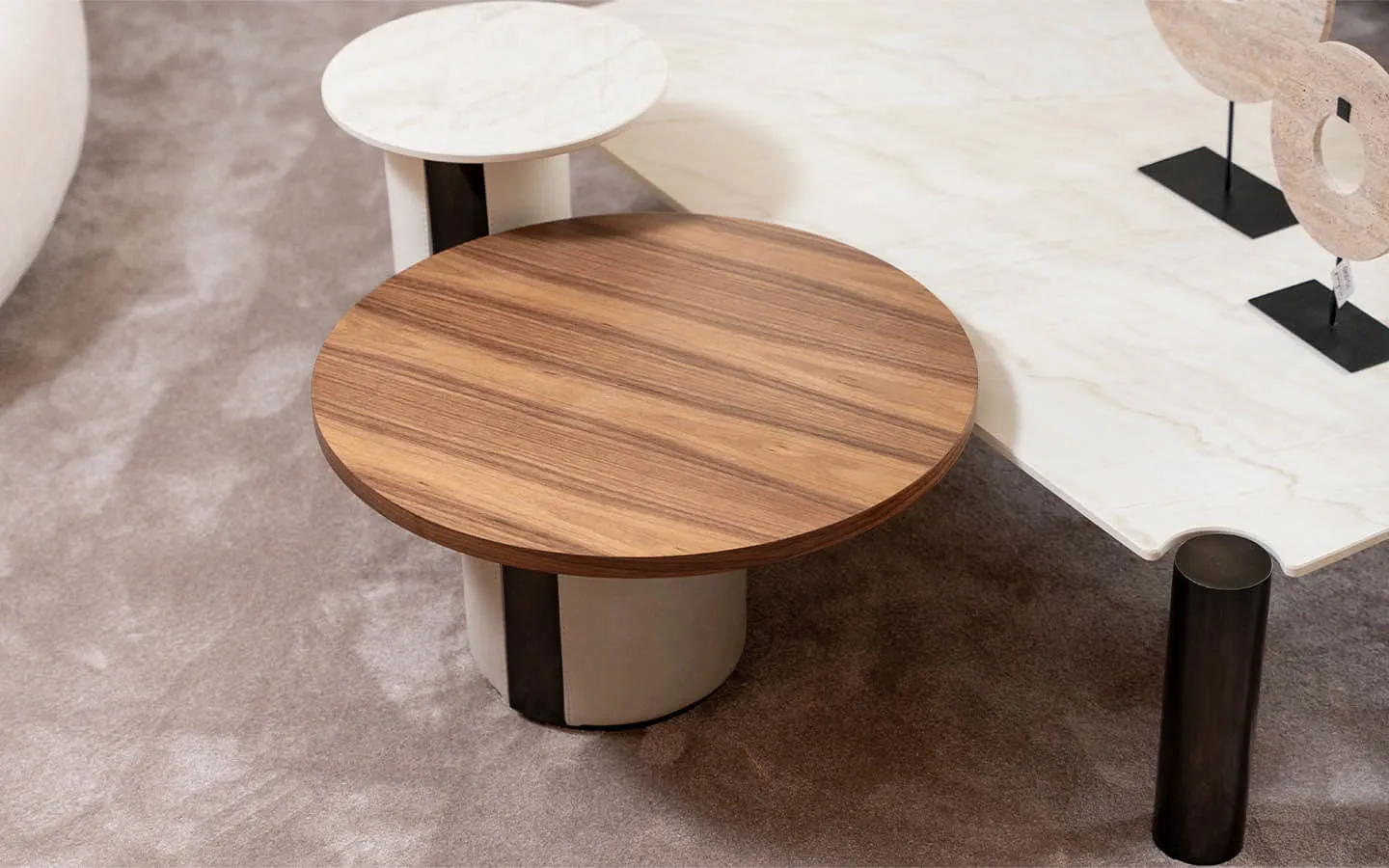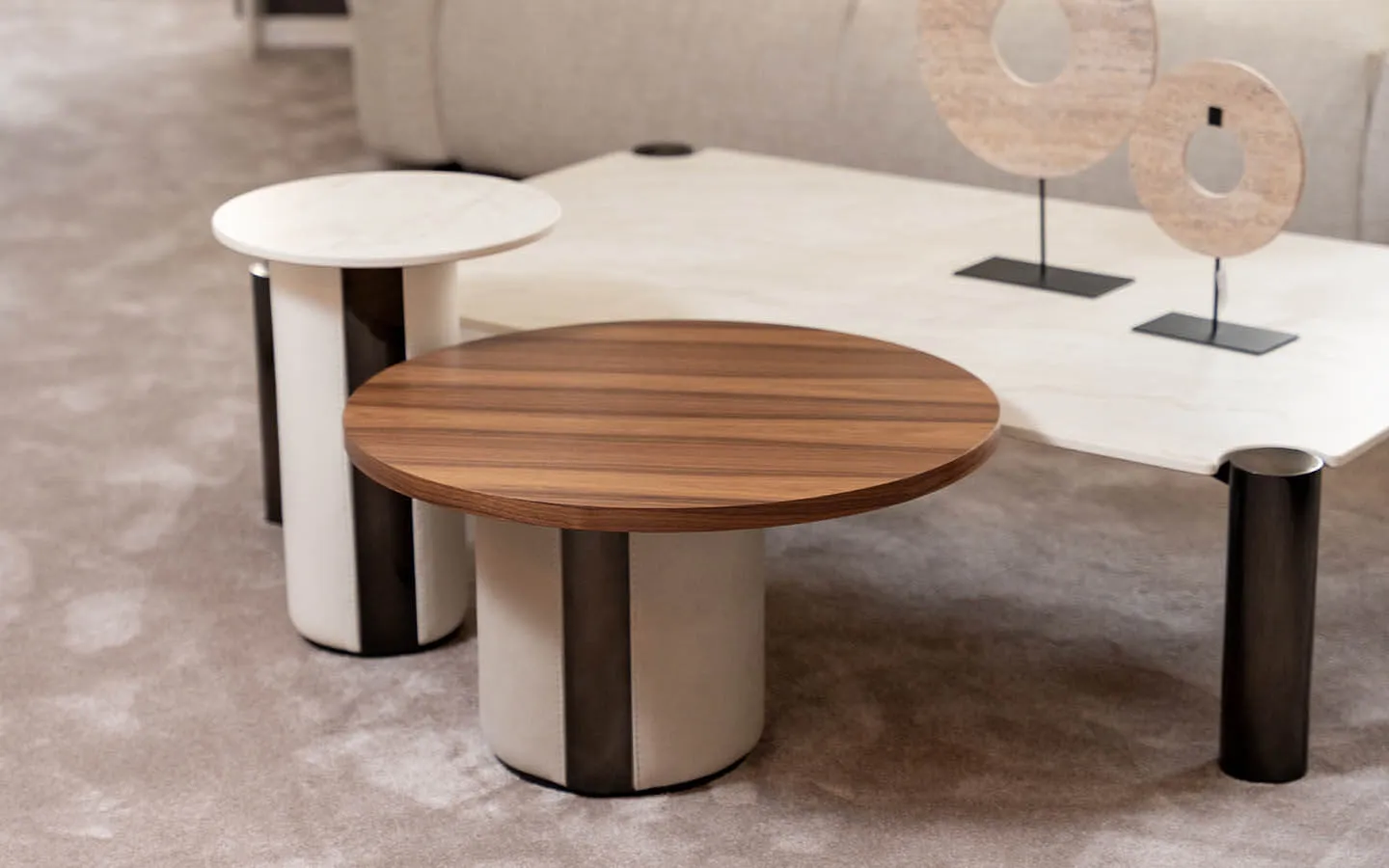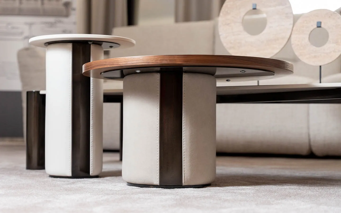 KRISA 1502 от Max Divani е елегантна холна маса с модерен и артистичен характер, която впечатлява с балансирано съчетание на различни материали и фини форми. Дизайнът ѝ се отличава с кръгъл плот от дърво или керамика, комбиниран с основа от естествена кожа, които създават интересен визуален контраст и придават дълбочина на композицията. Конструкцията е подчертана от тапицирани елементи в текстил или естествена кожа, допълнени от фини метални детайли, които внасят усещане за изисканост и съвременен стил. KRISA се предлага в различни варианти и комбинации от цветове, материали и покрития, което позволява лесно адаптиране към различни интериорни концепции – от минималистични до по-еклектични пространства. Това е холна маса, която не само изпълнява практична функция, но и действа като стилен акцент в дневната зона, допълвайки хармонично мебелировката и създавайки завършен и елегантен интериор.