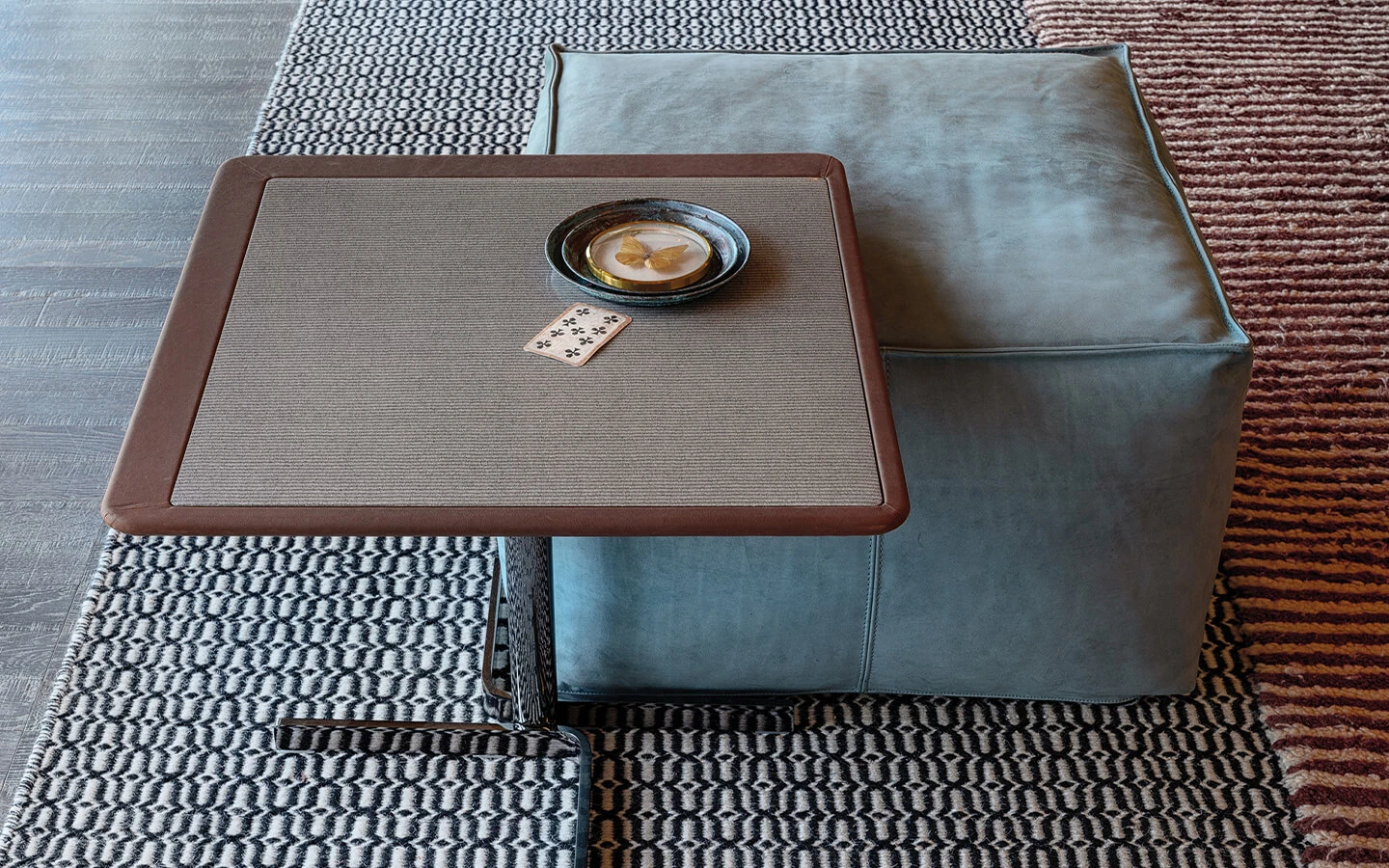LAUREL & HARDY е италианска холна маса от колекцията на италианския производител CIERRE. Плотът е с периметър, тапициран в естествена кожа. Централната част на плота може да бъде изработена от керамика – финиш по избор. Основата е изработена от метал – финиш Black Chrome. Цената се определя спрямо избора на размер.