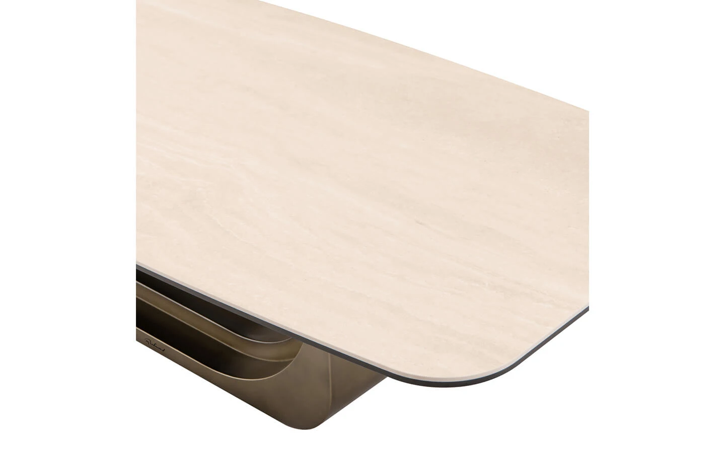 MAXFIELD BEIGE е холна маса от колекцията на нидерландския производител Richmond Interiors. Основата е изработена от метал. Плотът е изработен от керамика и стъкло – финиш Beige. Масата е с размери см. 140/70/35H.