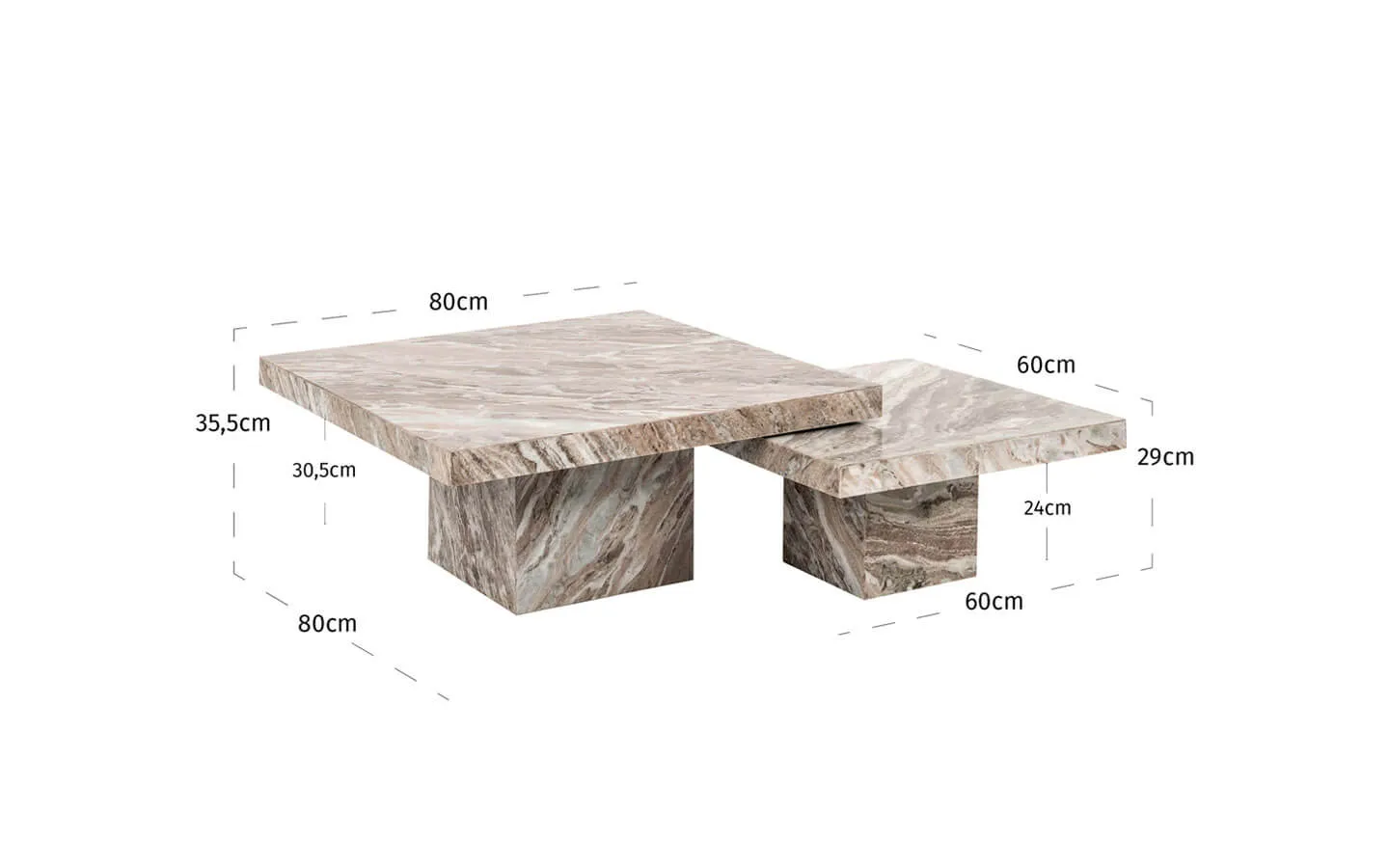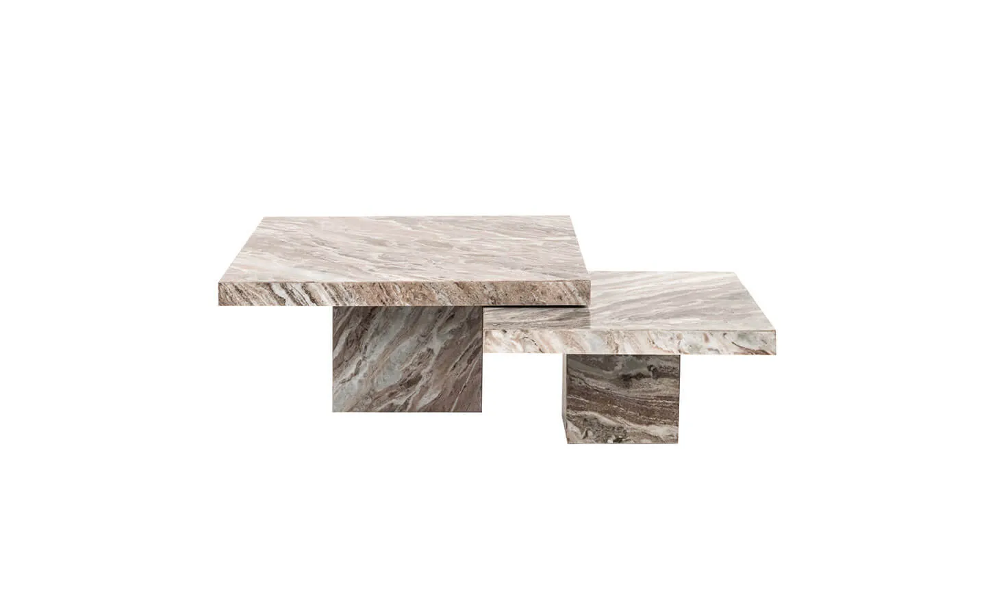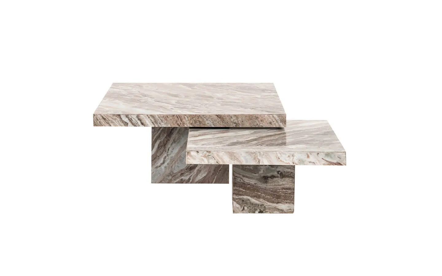 Се от две холни маси RASHFORD BLUSH BEIGE от колекцията на нидерландския бранд Richmond Interiors. Холните маси са изработени изцяло от мрамор Toronto – финиш Blush Beige.
