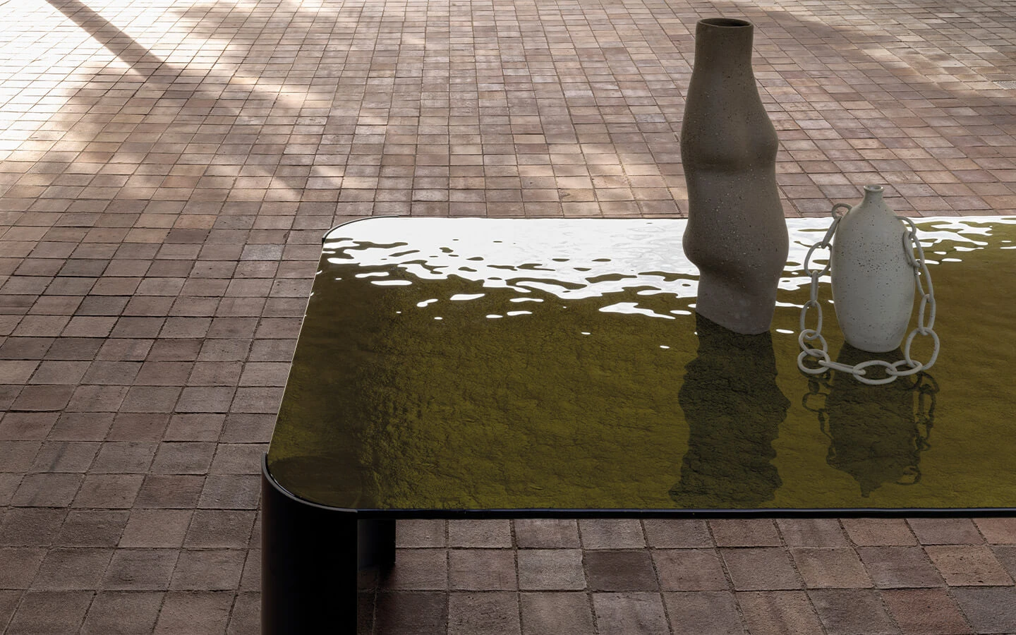 RIVIERA е италианска холна маса от колекцията на италианския производител CIERRE. Плотът е изработен от стъкло – финиш по избор. Краката са изработени от извит метал – финиш по избор. Цената се определя спрямо избора на размер и финиша на метала за краката на масата.
