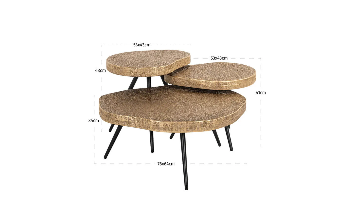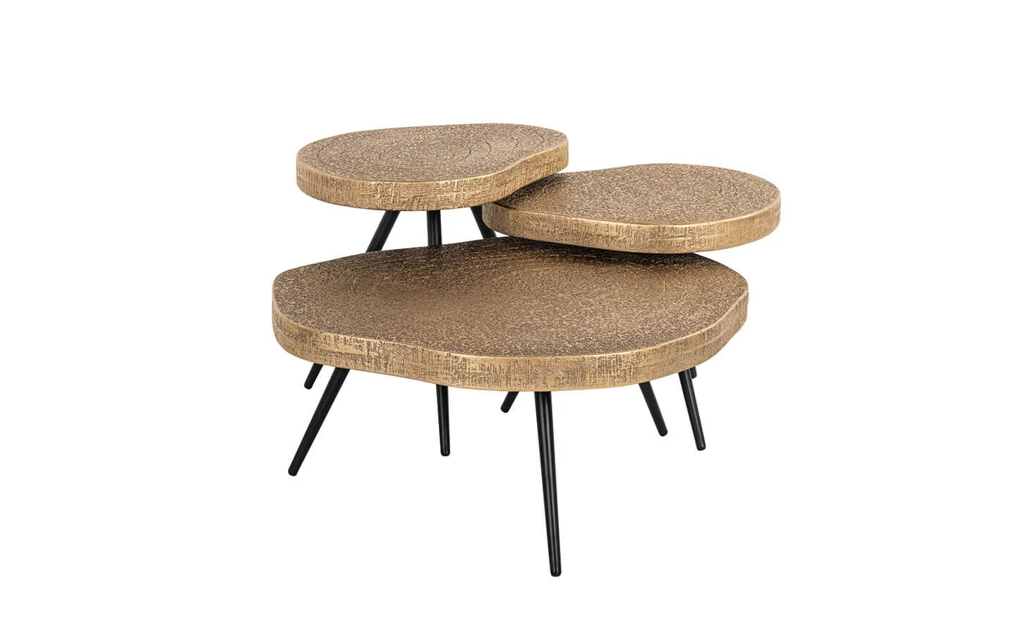 Сет от три холни маси SYMBA BRONZE от колекцията на нидерландския бранд Richmond Interiors. Основата е изработена от метал. Плотът е във финиш Bronze.