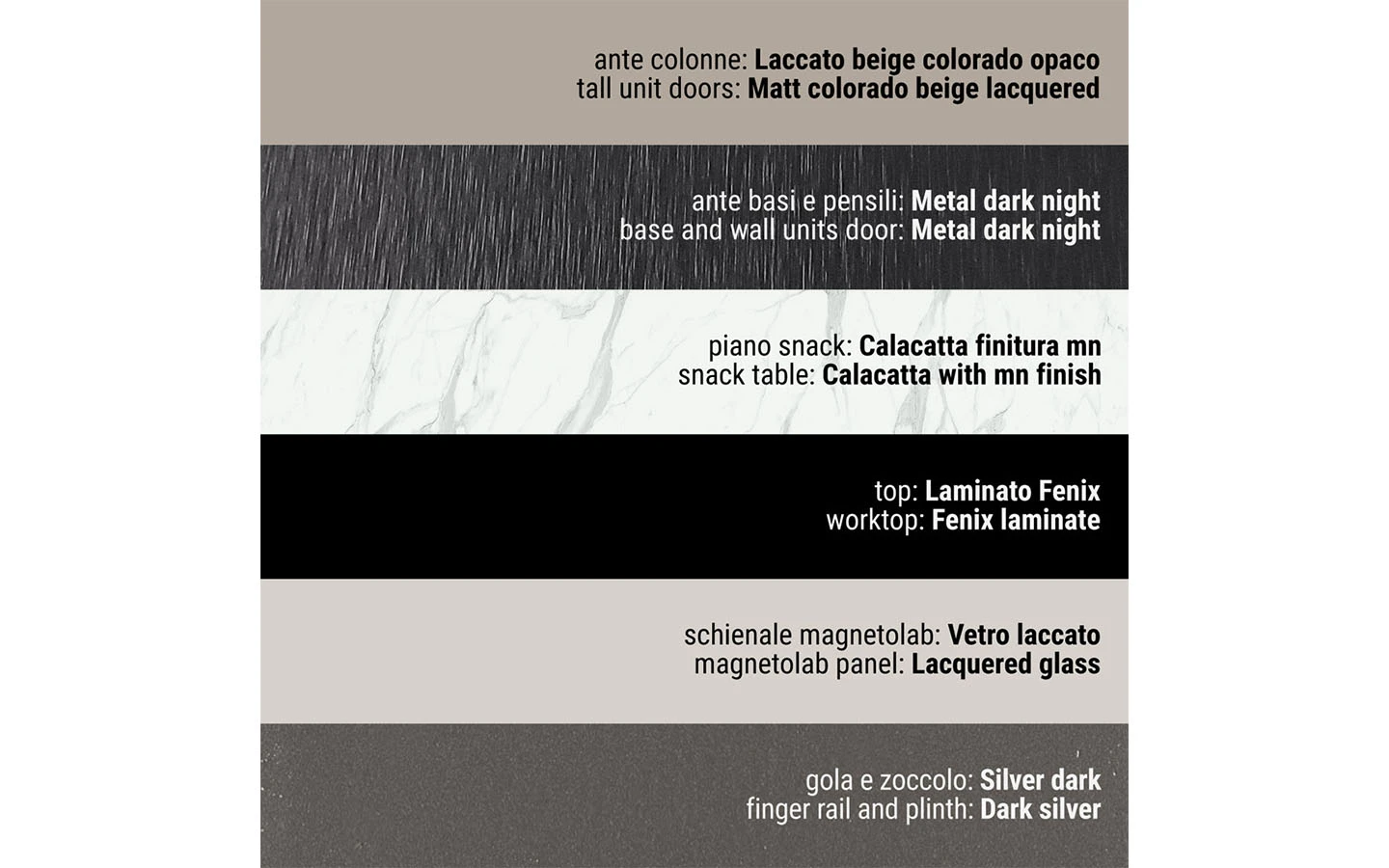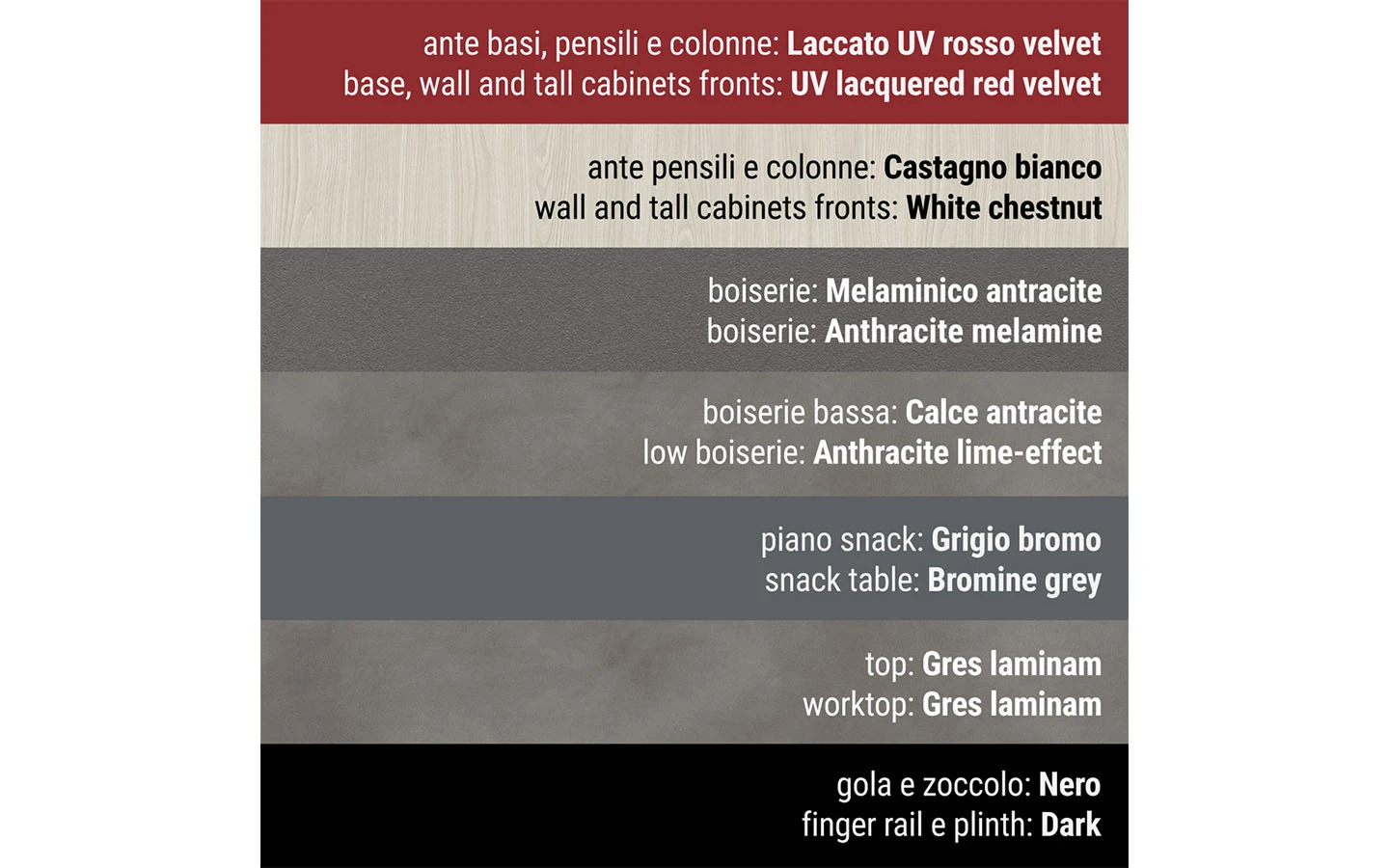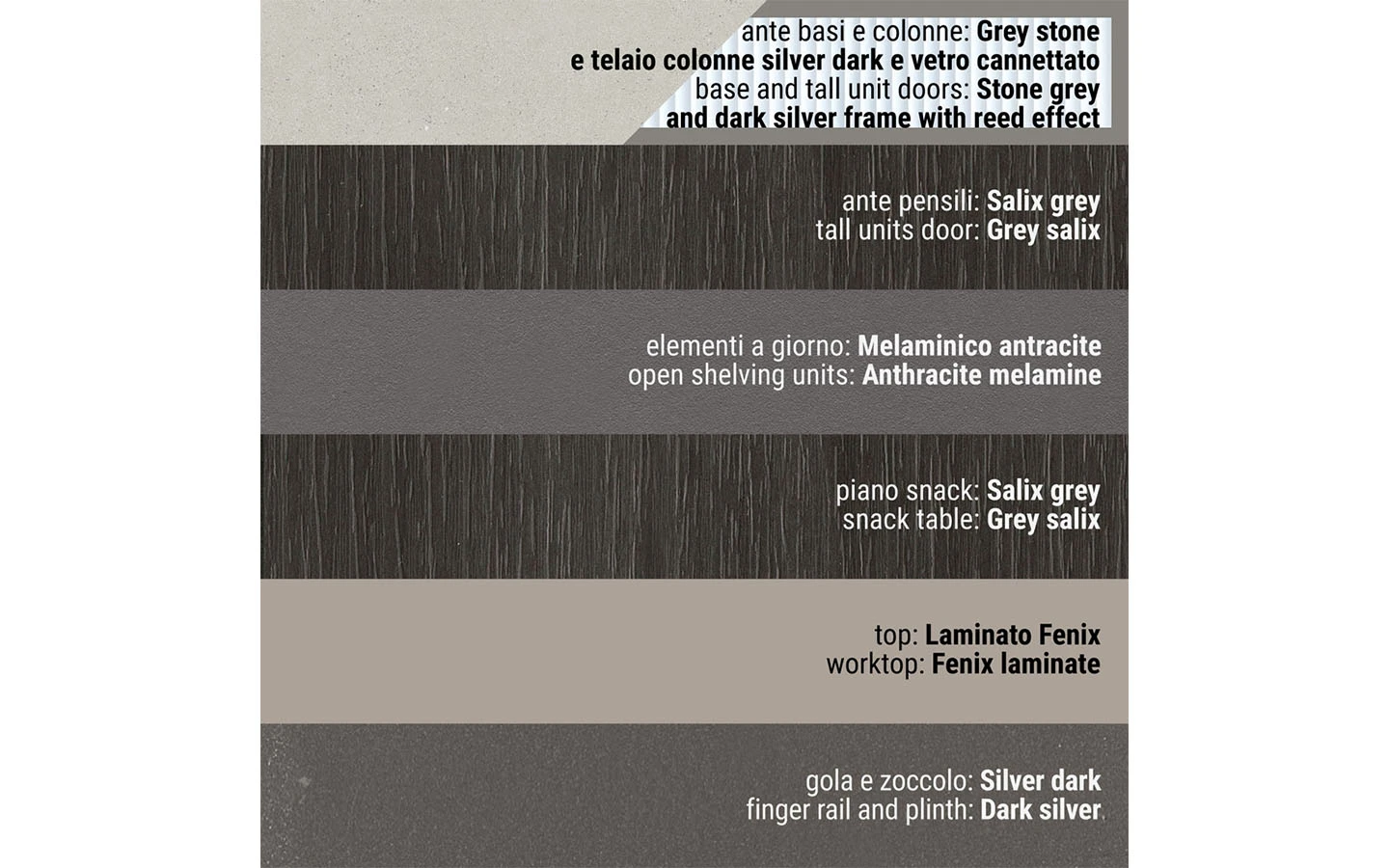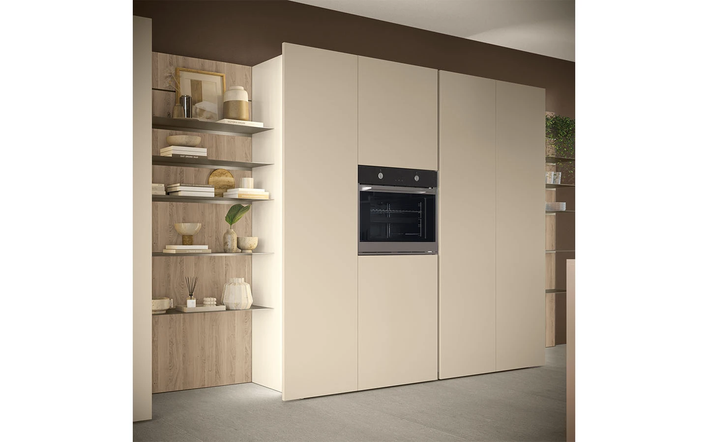 Сред видовете финиши ще намерите разнообразие от естествени дървесни видове, покрития на вратичките с чудесна меламинова имитация на дървесни видове и безброй цветове лакови и матови покрития. Вратичките на кухнята IMMAGINA Plus могат да бъдат както със скрити дръжки, така и с вкопани или външни.