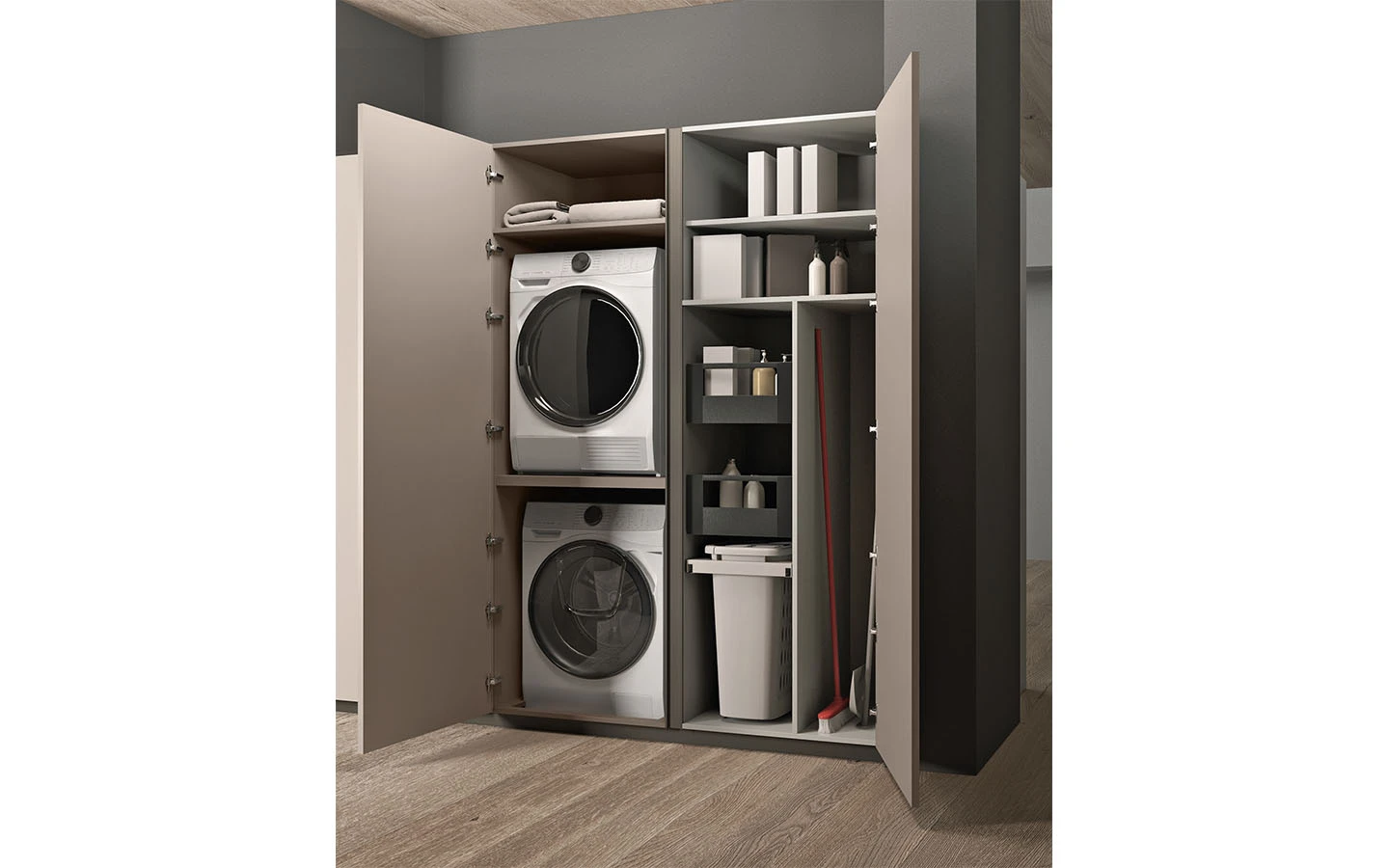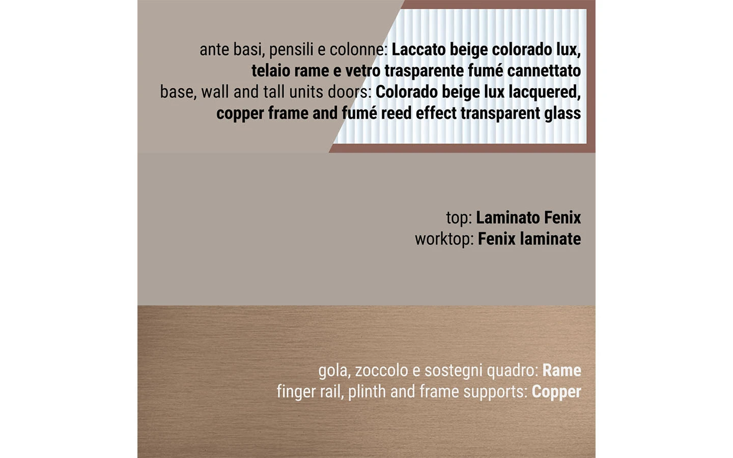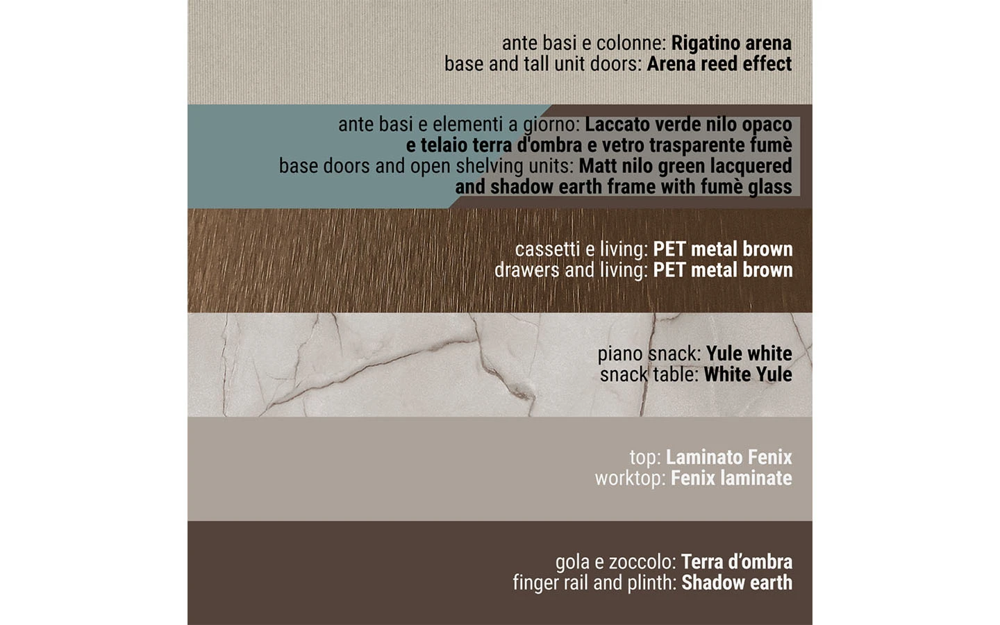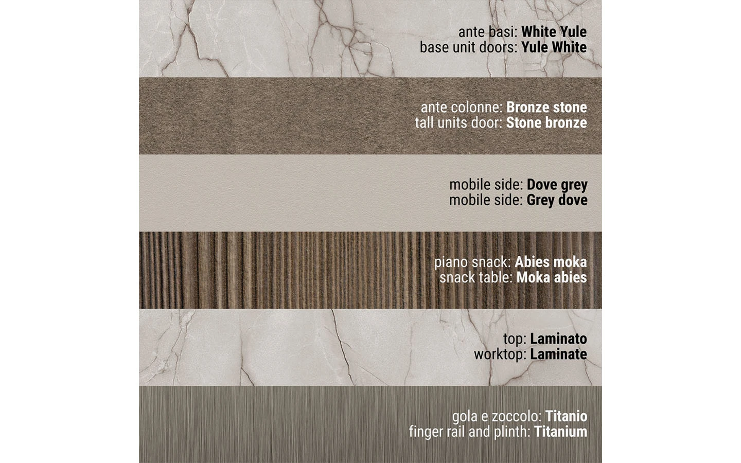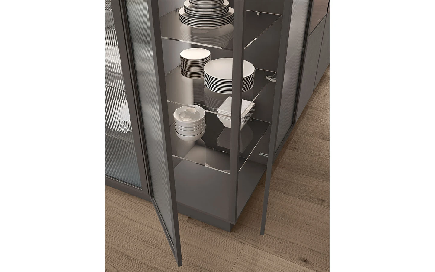 Сред видовете финиши ще намерите разнообразие от естествени дървесни видове, покрития на вратичките с чудесна меламинова имитация на дървесни видове и безброй цветове лакови и матови покрития. Вратичките на кухнята IMMAGINA Plus могат да бъдат както със скрити дръжки, така и с вкопани или външни.