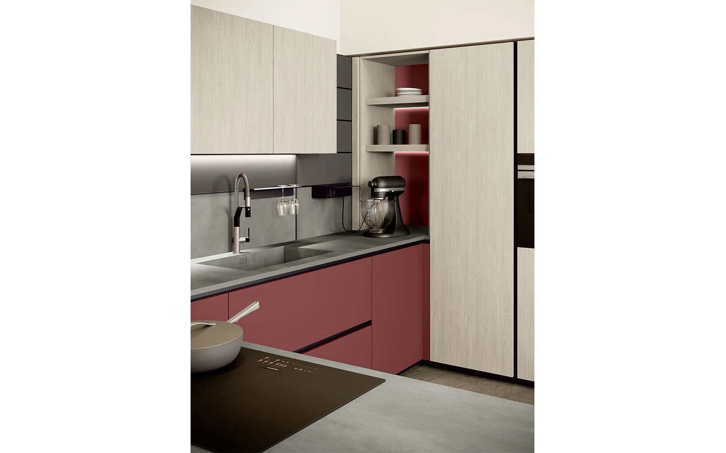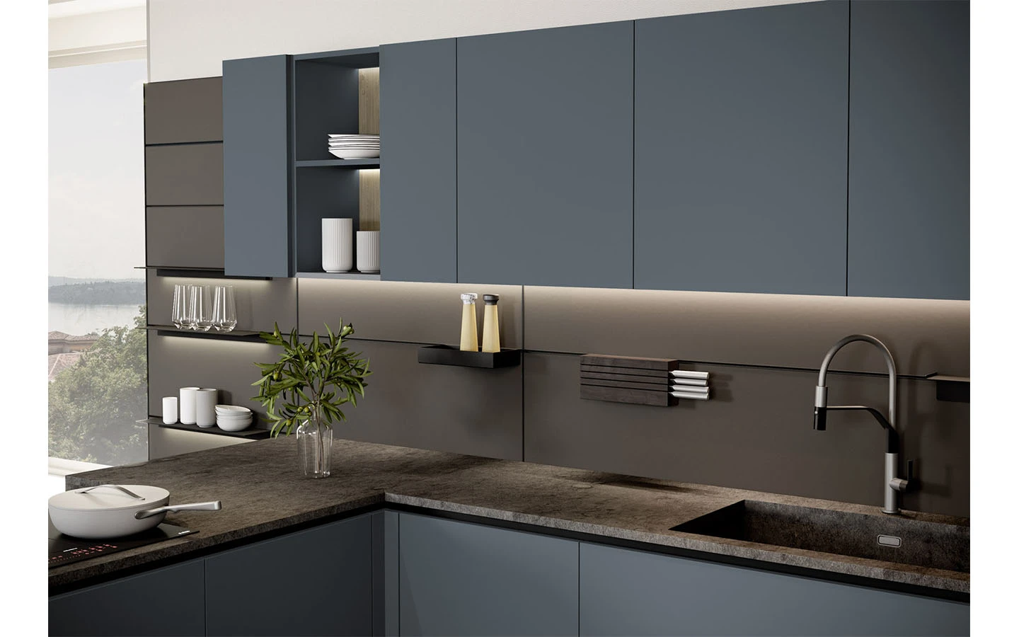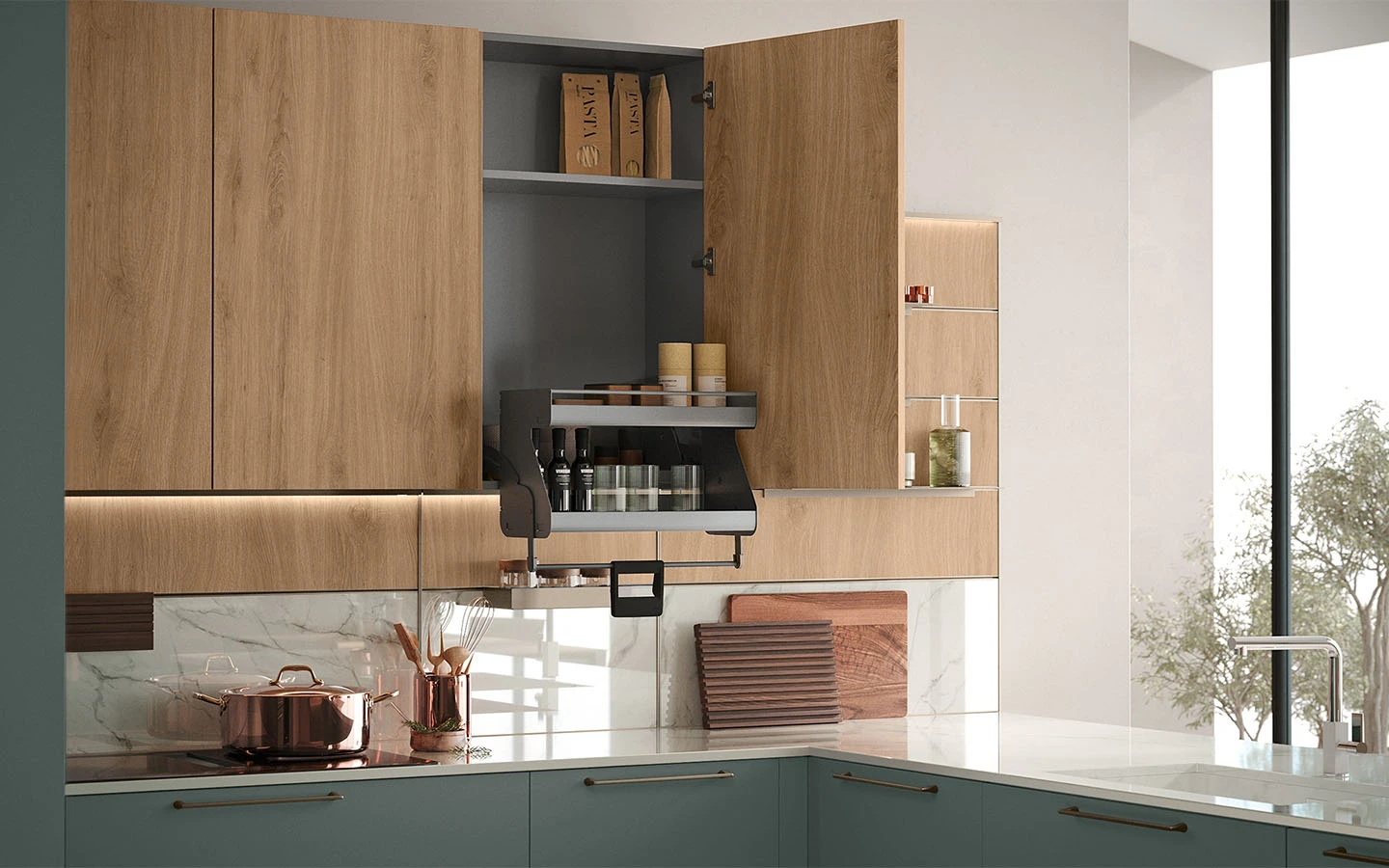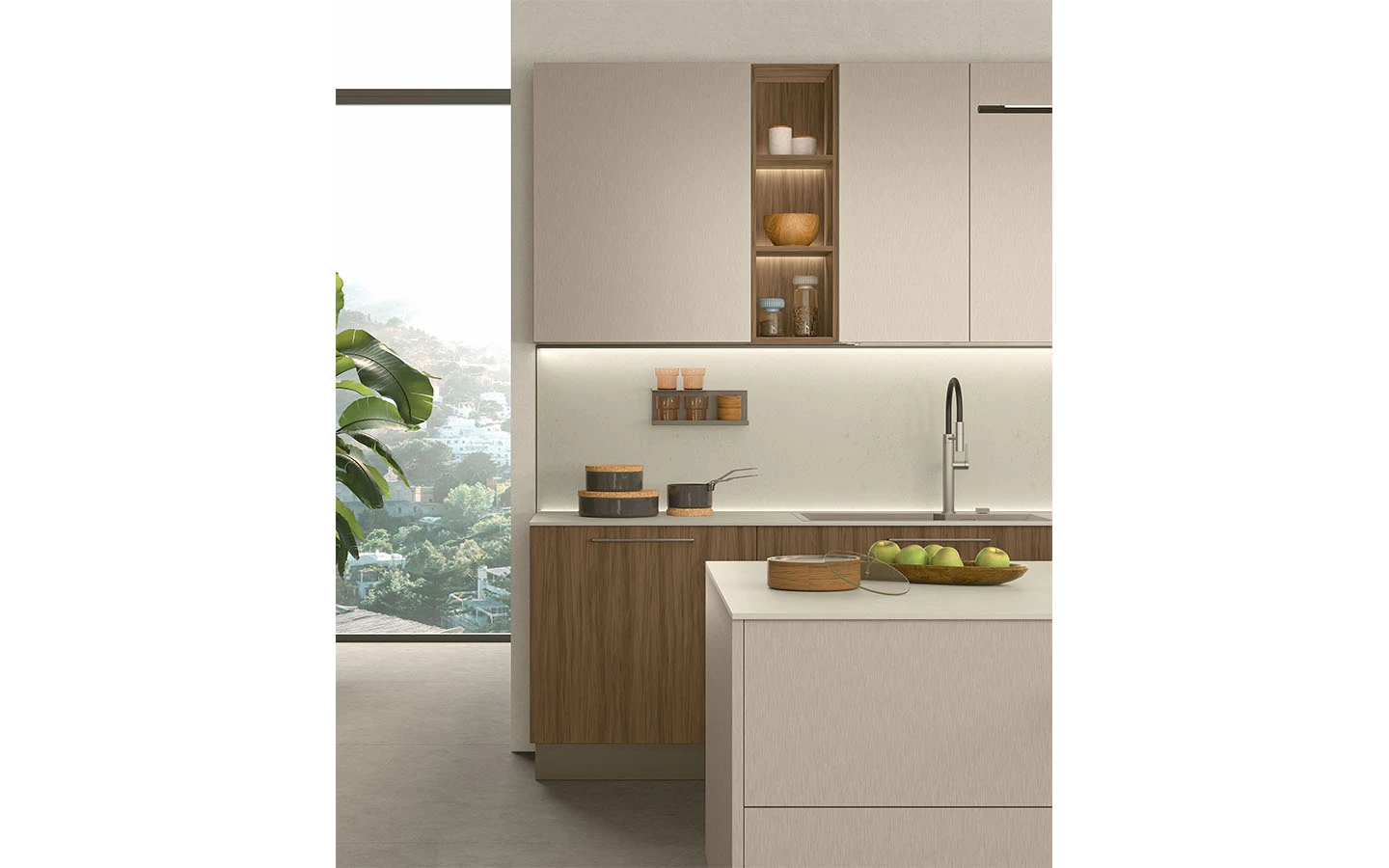 С възможностите на колекцията IMMAGINA Plus, нашият екип може да удовлетвори естетичните предпочитания на всеки един клиент и да ги адаптира към всяко едно пространство предназначено за кухня.