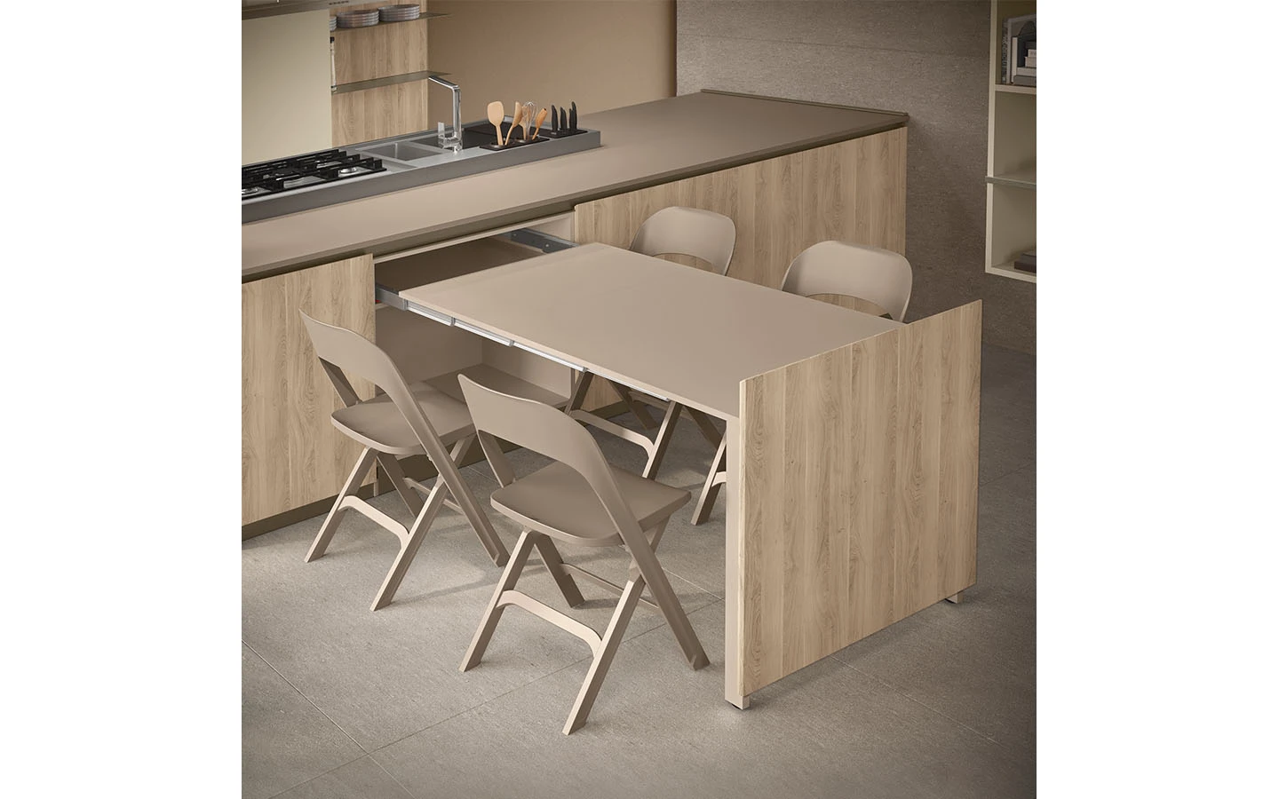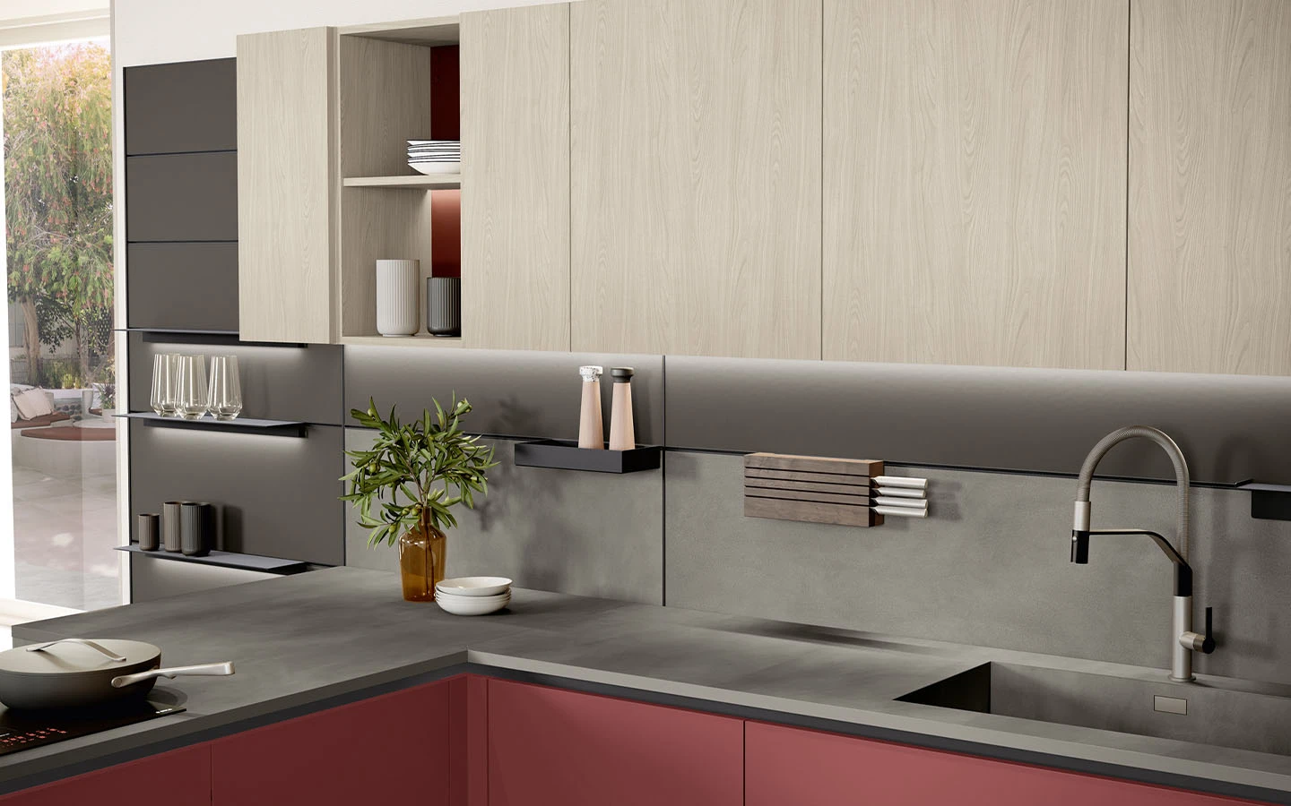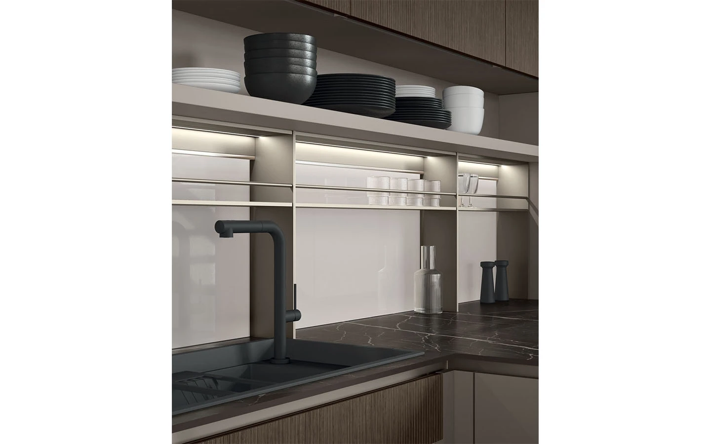 С възможностите на колекцията IMMAGINA Plus, нашият екип може да удовлетвори естетичните предпочитания на всеки един клиент и да ги адаптира към всяко едно пространство предназначено за кухня.