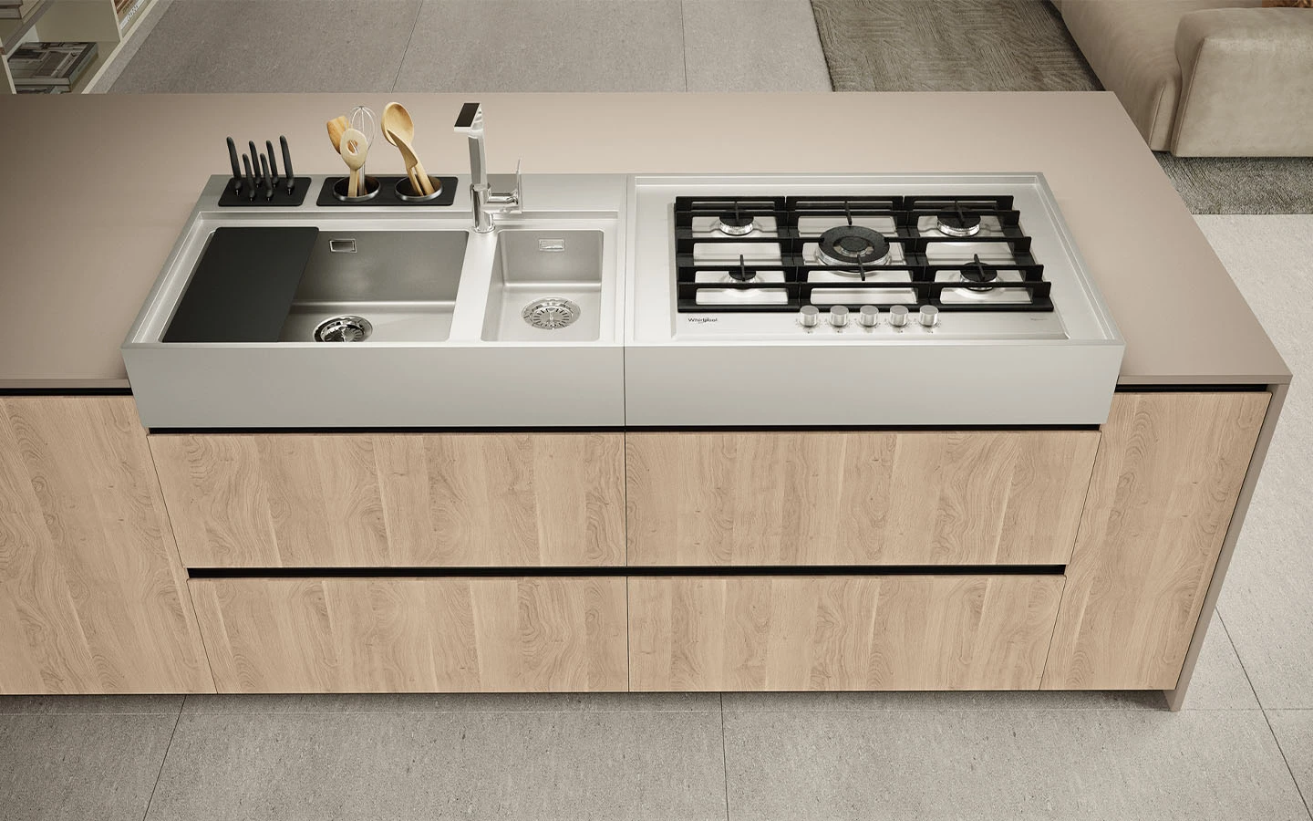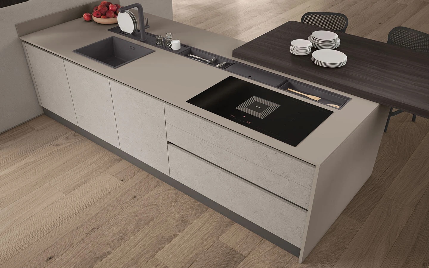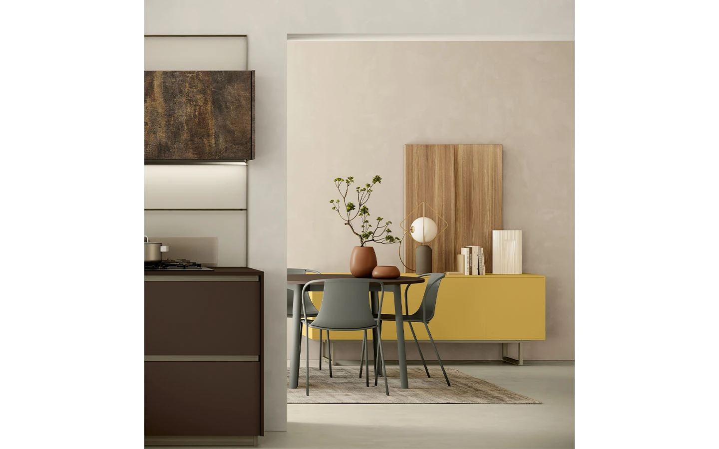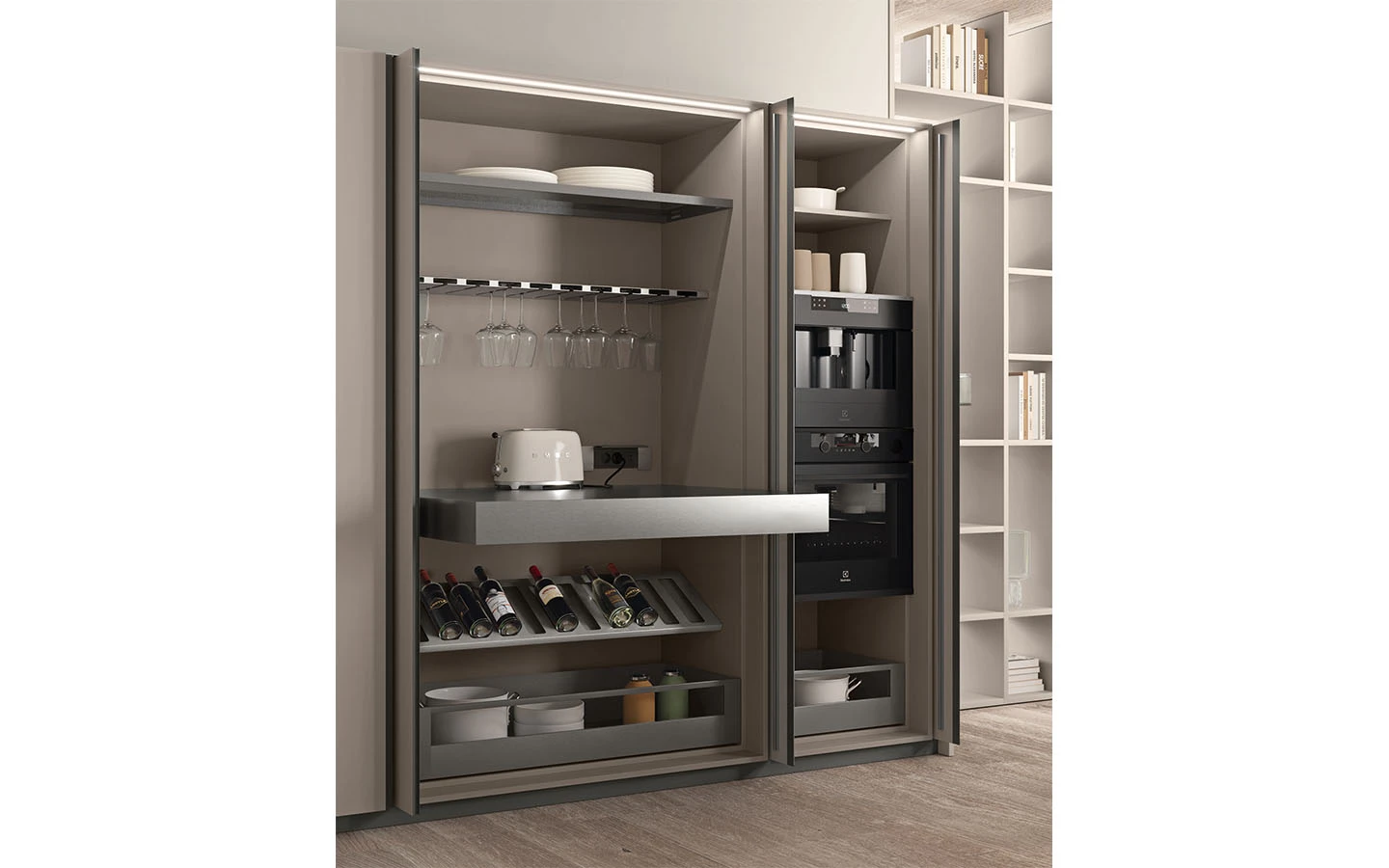 С възможностите на колекцията IMMAGINA Plus, нашият екип може да удовлетвори естетичните предпочитания на всеки един клиент и да ги адаптира към всяко едно пространство предназначено за кухня.