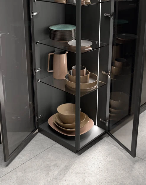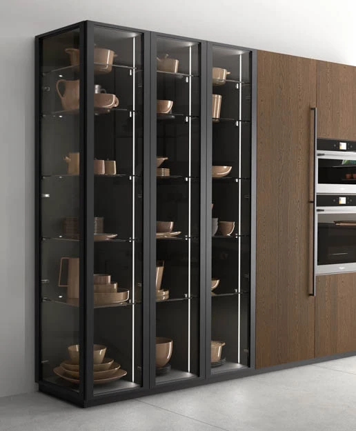 Сред видовете финиши ще намерите разнообразие от естествени дървесни видове, покрития на вратичките с чудесна меламинова имитация на дървесни видове и безброй цветове лакови и матови покрития. Вратичките на кухнята IMMAGINA Wood могат да бъдат както със скрити дръжки, така и с вкопани или външни.