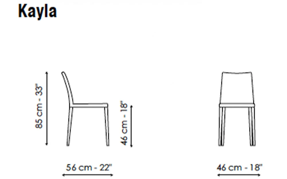 KAYLA е италиански трапезарен стол от колекцията на италианския производител Bonaldo. Италианският трапезарен стол KAYLA може да бъде тапициран в дамаска, еко кожа или кожа – материал и цвят по избор на клиента. Краката на стола могат да са изцяло тапицирани или метални във финиш по избор на клиента. Предлага се също и във версии KAYLA UP (с висока облегалка), MISS KAYLA (с подлакътници) или MISS KAYLA UP (с висока облегалка и подлакътници).