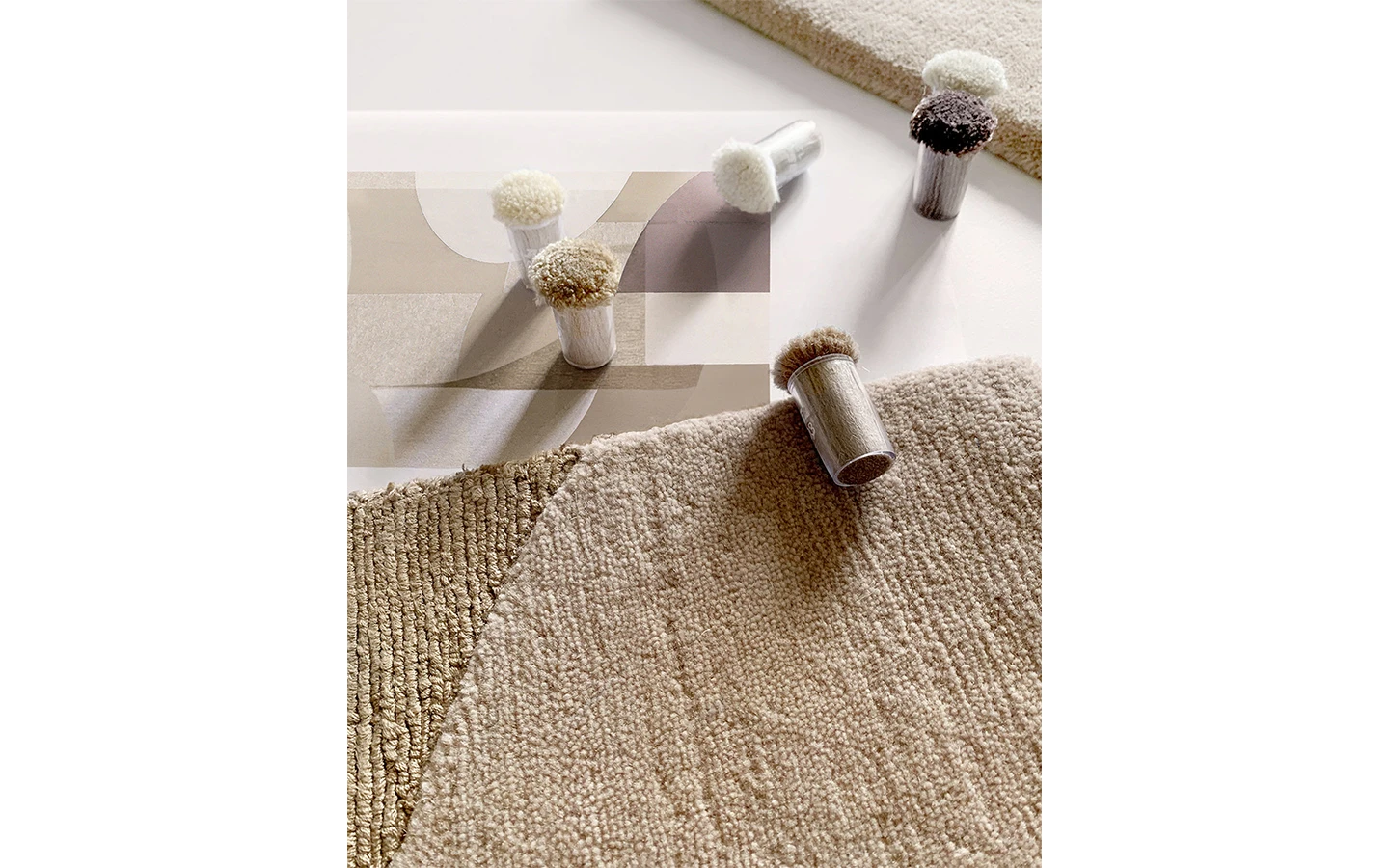 ATLAS AT02 SAND е ръчно връзван правоъгълен килим от колекцията Atlas на Mohebban, създаден от Studio Zero. Изработен е в Индия и има състав от висококачествена вълна и тенсел, с дебелина приблизително 2 см. Предлага се в стандартни размери 300×220 см, 360×270 см и 400×300 см, като са възможни поръчкови размери и цветове. Дизайнът е вдъхновен от идеята за вечна и неумолима Пангея, където красиви фрагменти се събират и съседстват, наподобявайки континенти. Тази абстрактна концепция обединява композиционна сила и тактилна деликатност, като несъвършените острови сякаш плават в океана на времето, създавайки примитивни форми, отразяващи неумолимото движение на природата и Земята.