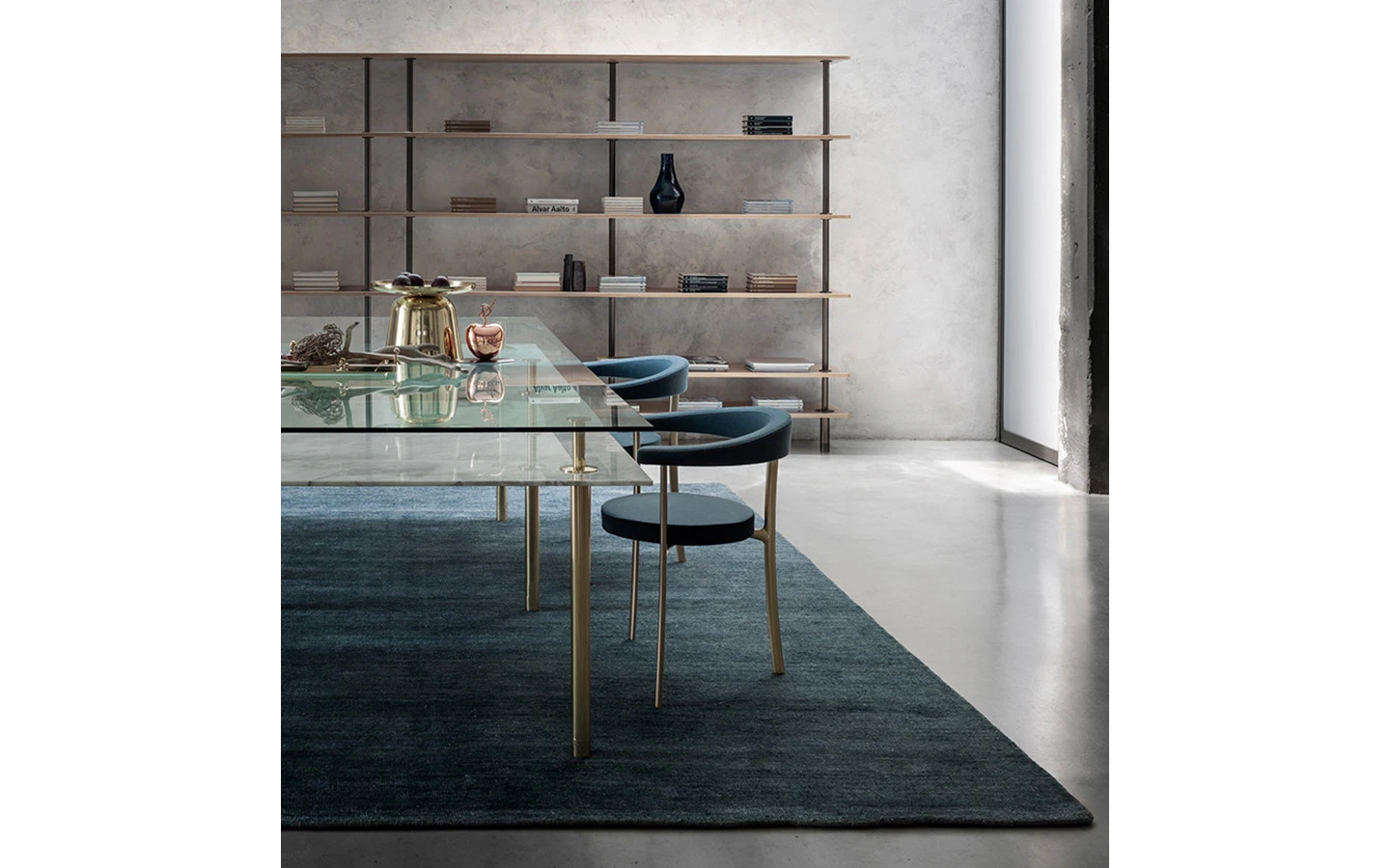 LOOM PETROL от Mohebban Milano е ръчно изработен килим, произведен в Индия чрез техниката hand-loom. Изработен е от комбинация от бамбукова коприна и вълна, което му придава мека и кадифена текстура, подсилена от здрава вълнена основа. Тази комбинация създава фини контрасти и уникални неравности, които допълнително подчертават характера на килима. Стандартната дебелина е приблизително 1 см, като се предлага в различни размери, а също така могат да бъдат поръчани персонализирани размери и цветове.