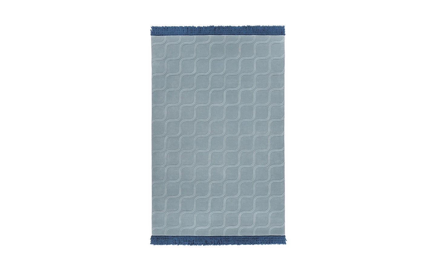 Килимът TWIGGY LIGHT BLUE от Mohebban Milano, проектиран от Serena Confalonieri, е вдъхновен от ярките цветове, шарки и стилове на 70-те години. Този ръчно тъфтиран килим е изработен от 100% вълна и включва тон-в-тон мотиви, постигнати чрез различни височини на влакната. Отличителен елемент в дизайна са контрастните ресни с уникален „стъпаловиден“ разрез, който придава допълнителен обем и мекота на декоративния ефект.