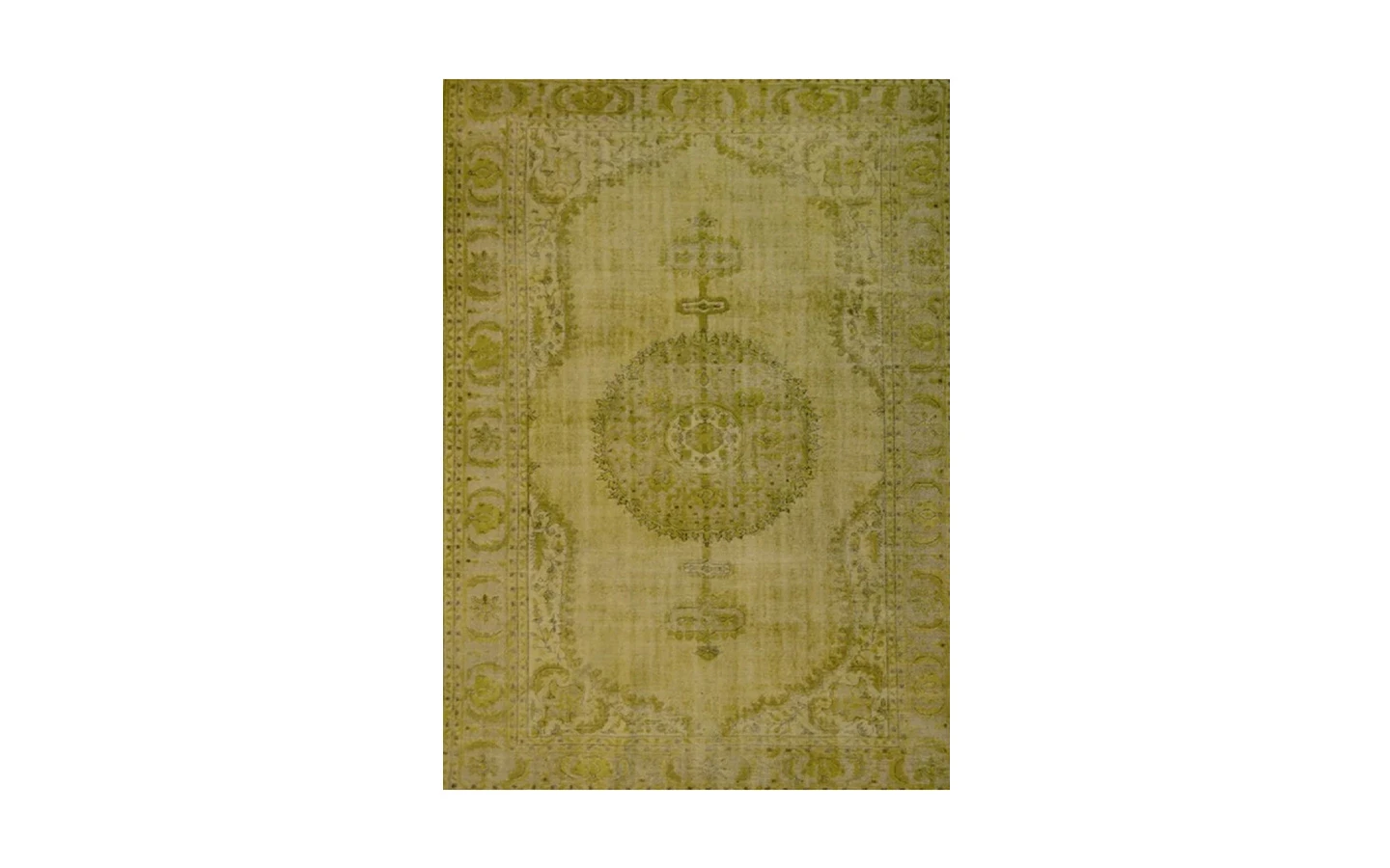 Килимът VINTAGE LEMON GREEN от Mohebban Milano е част от колекцията VINTAGE, която трансформира традиционни ръчно вързани килими в модерни дизайнерски произведения. Тези килими преминават през процес на обезцветяване и последващо багрене в монохромни нюанси, което им придава уникален и съвременен вид. Влакната на килима се частично или напълно бръснати, за да се постигне износен, но стилен ефект. Всеки килим от тази колекция е уникален и невъзможен за точно възпроизвеждане.