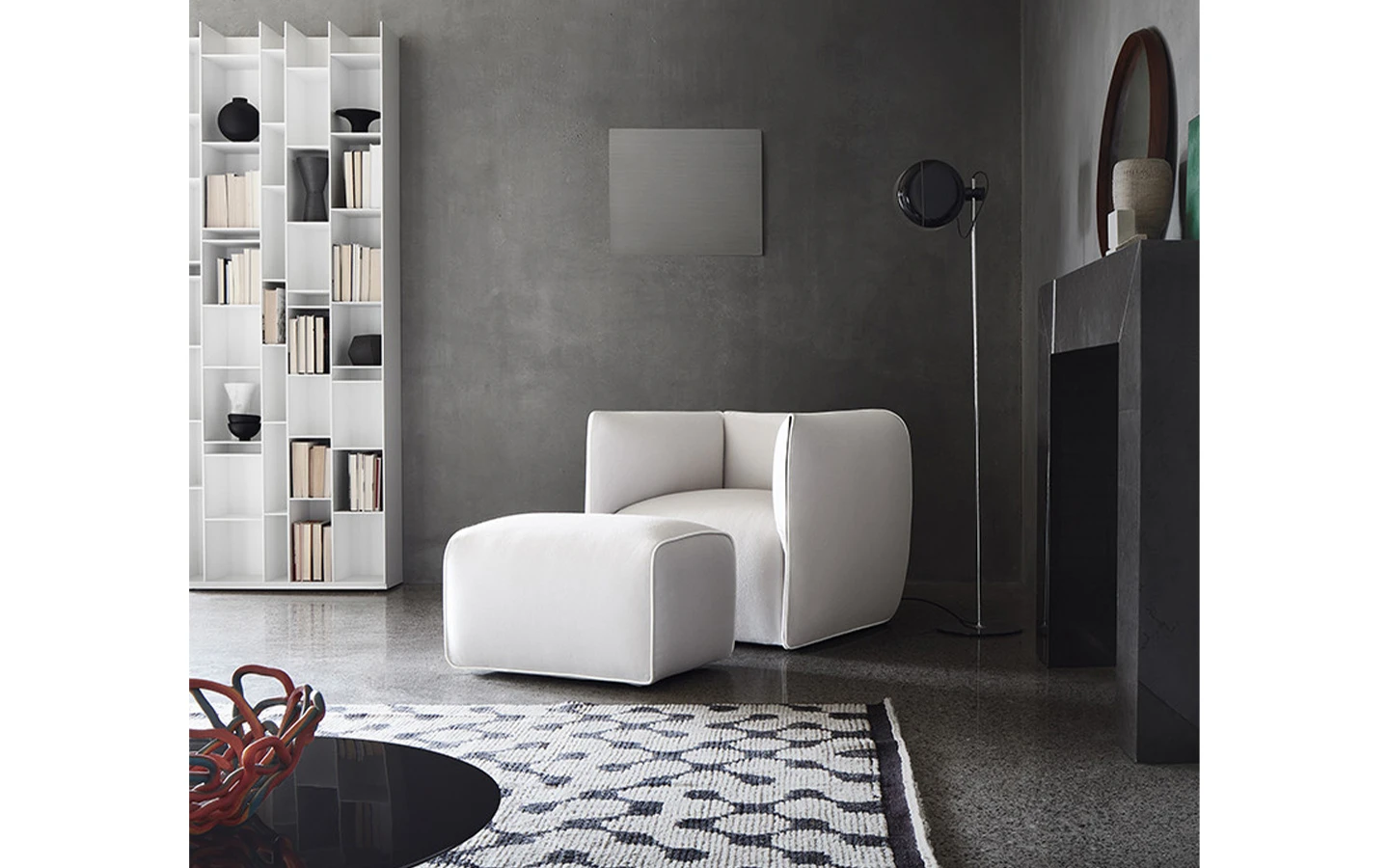 Килимът WOOLAND PUZZLE от Mohebban Milano, проектиран от студио Elena Caponi, е част от колекцията WOOLAND, която включва три различни дизайна: Dots, Puzzle и Rhombus. Тези килими са ръчно вързани от вълна и се отличават с геометрични шарки, които придават съвременен и изчистен вид. Колекцията WOOLAND е ръчно изработена в Турция от опитни майстори, което гарантира високо качество и внимание към детайла.