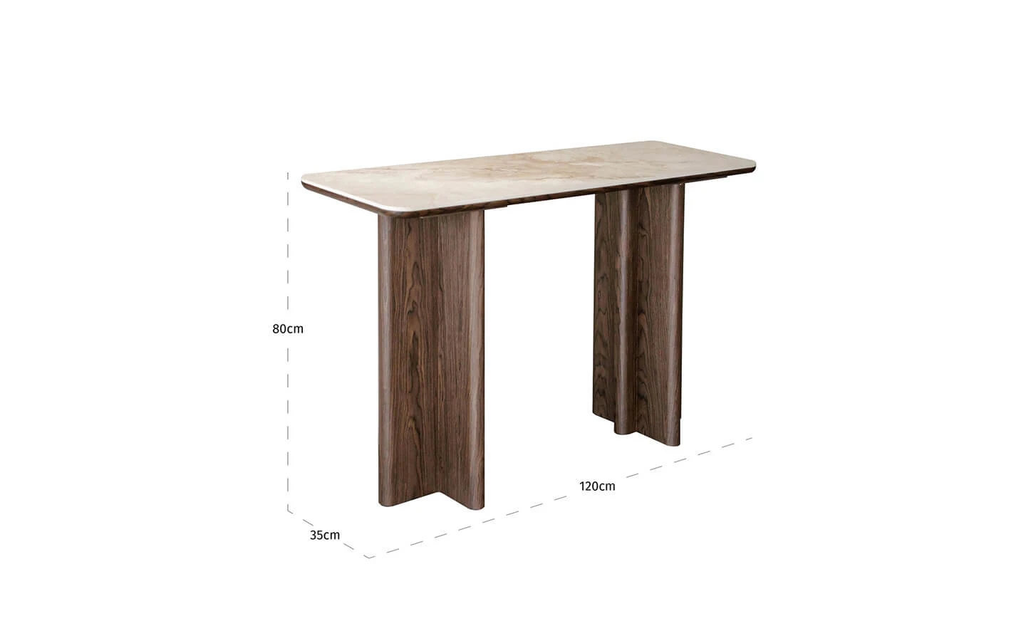 COLSON BROWN от RICHMOND INTERIORS е елегантна конзолна маса, която съчетава модерна естетика и изискано излъчване. Моделът впечатлява с изчистени линии и хармонични пропорции, които създават усещане за баланс и стил. Плотът с керамична повърхност придава луксозен характер и добавя дълбочина към дизайна, докато топлият кафяв нюанс създава уютна и елегантна атмосфера в интериора. COLSON BROWN от RICHMOND INTERIORS е стилно и функционално решение за антре или хол, като предлага практична повърхност за декорации, осветителни тела и аксесоари и същевременно се превръща в изискан акцент в интериора.