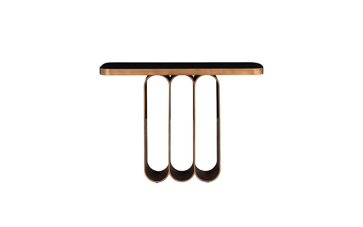 LOCARNO е конзолна маса от колекцията на нидерландския бранд Richmond Interiors. Основата е изработена от метал – финиш Brushed Gold. Плотът е двулицев и е изработен от черно стъкло и керамика Travertine.