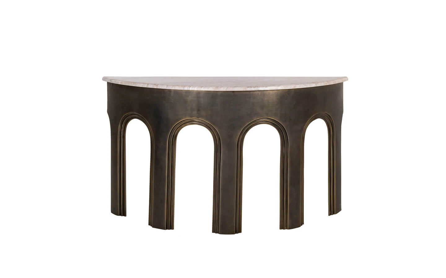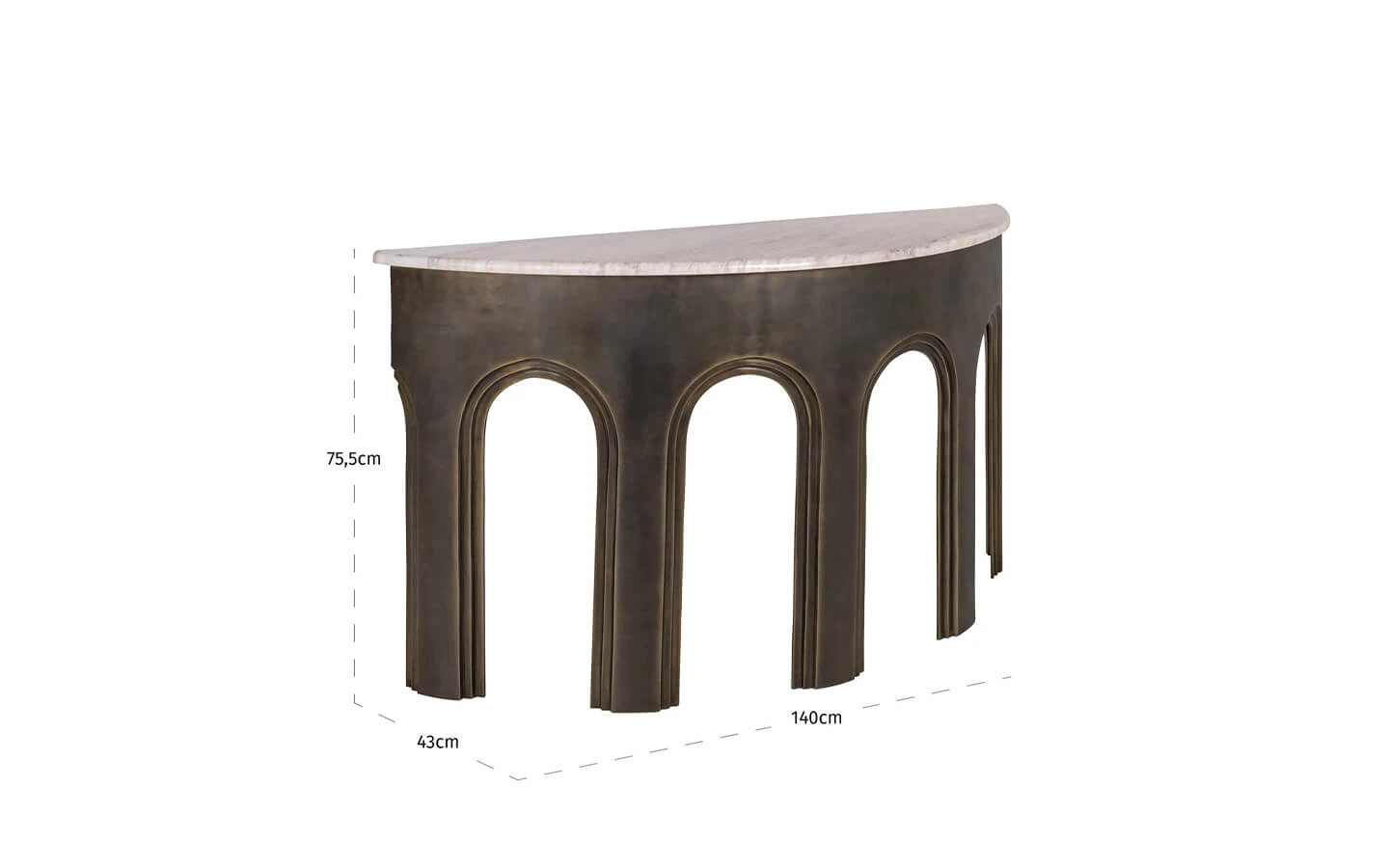 SANCHIS BRASS ANTIQUE е конзолна маса от колекцията на нидерландския производител Richmond Interiors. Основата е изработена от метал – финиш Brass Antique. Плотът е изработен от мрамор Morchana.