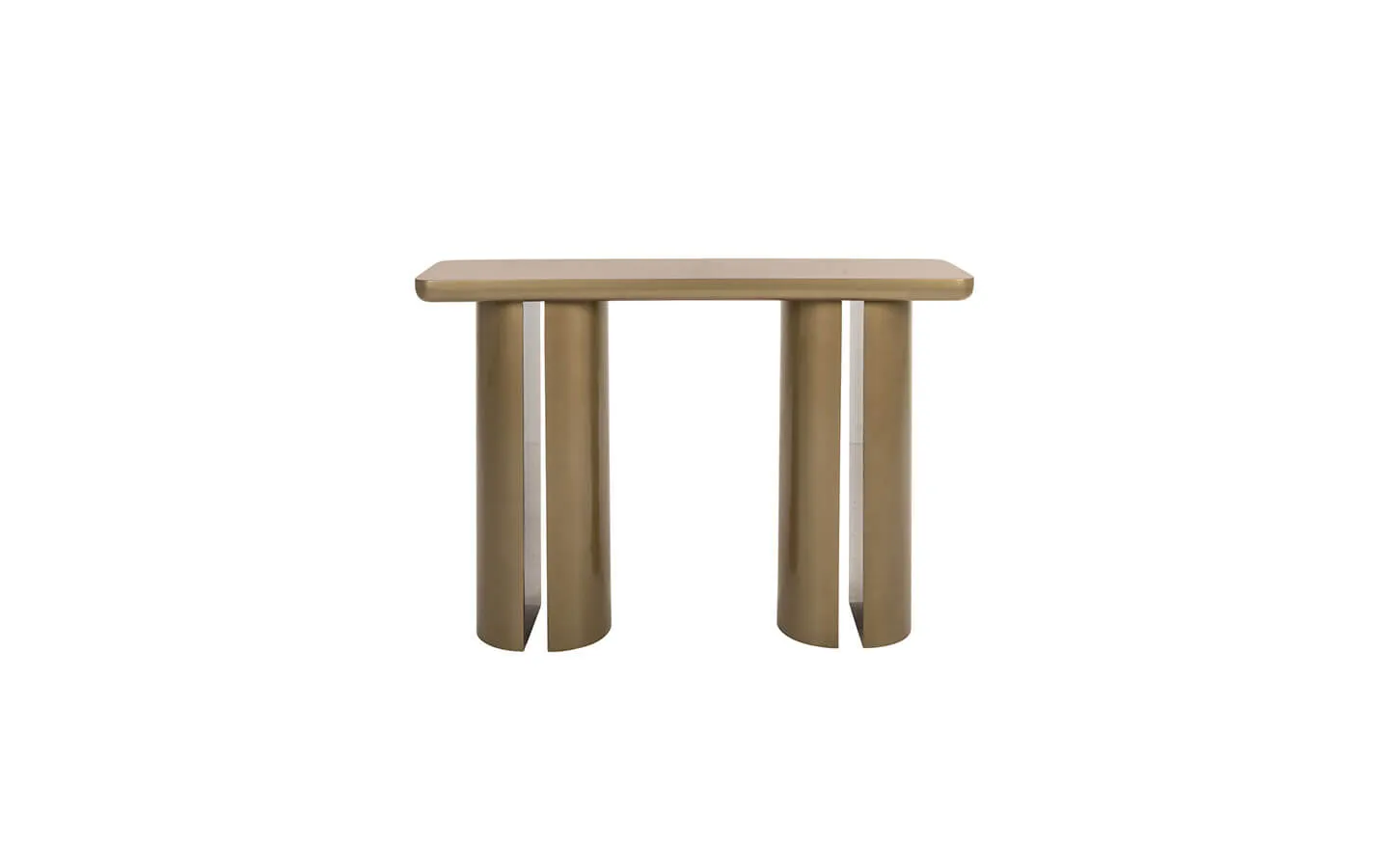 WHISKER от RICHMOND INTERIORS е модерна и елегантна конзолна маса, която впечатлява с изчистени линии и изтънчен златист финиш. Дизайнът ѝ съчетава минимализъм с артистичен характер – плътен, гладък плот с меки заоблени ръбове е поддържан от две цилиндрични основи, които придават скулптурен вид и създават усещане за лекота и стабилност едновременно. Топлият златен тон добавя фино усещане за лукс и стил, без да бъде натрапчив, което я прави подходяща както за модерни, така и за по-класически интериори. WHISKER е идеален избор за антре, зад диван или като акцентна маса в дневна, където служи както като функционална повърхност, така и като декоративен елемент. Тя носи усещане за съвременна естетика, премерен блясък и артистична изразност, превръщайки всяко пространство в по-стилно и завършено.