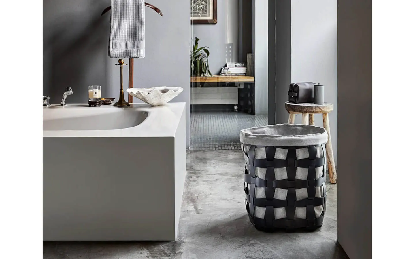 Кошът за пране HOOK MEDIUM на Pinetti е ръчно изработен модел със среден размер, който съчетава естествена кожа и текстил в изтънчен, модерен дизайн. Фината плетка от кожа създава елегантна структура, а подвижната текстилна подплата от лен и памук прави поддръжката лесна и удобна, тъй като може да се сваля и пере. Благодарение на устойчивостта на материалите към влага и светлина кошът е подходящ както за интериорни пространства, така и за използване на открито. Компактните му размери го правят идеален за съхранение на пране, кърпи или различни аксесоари, като внася стил и практичност във всяка стая. Изработката по поръчка и качеството, характерно за Pinetti, гарантират дълготрайност и луксозно усещане.