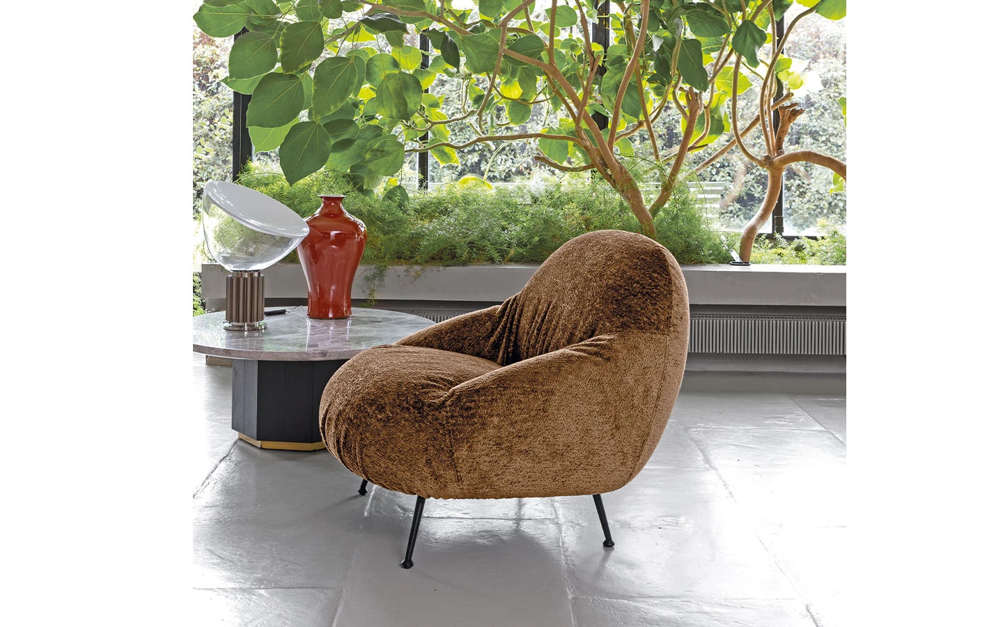DATE е италианско кресло от колекцията на италианския производител Flexteam. Италианското кресло DATE може да бъде тапицирано в дамаска или еко кожа – материал и цвят по избор на клиента. Краката на креслото са изработени от метал във финиш Black. Цената на креслото се формира на база избора на тапицерия.