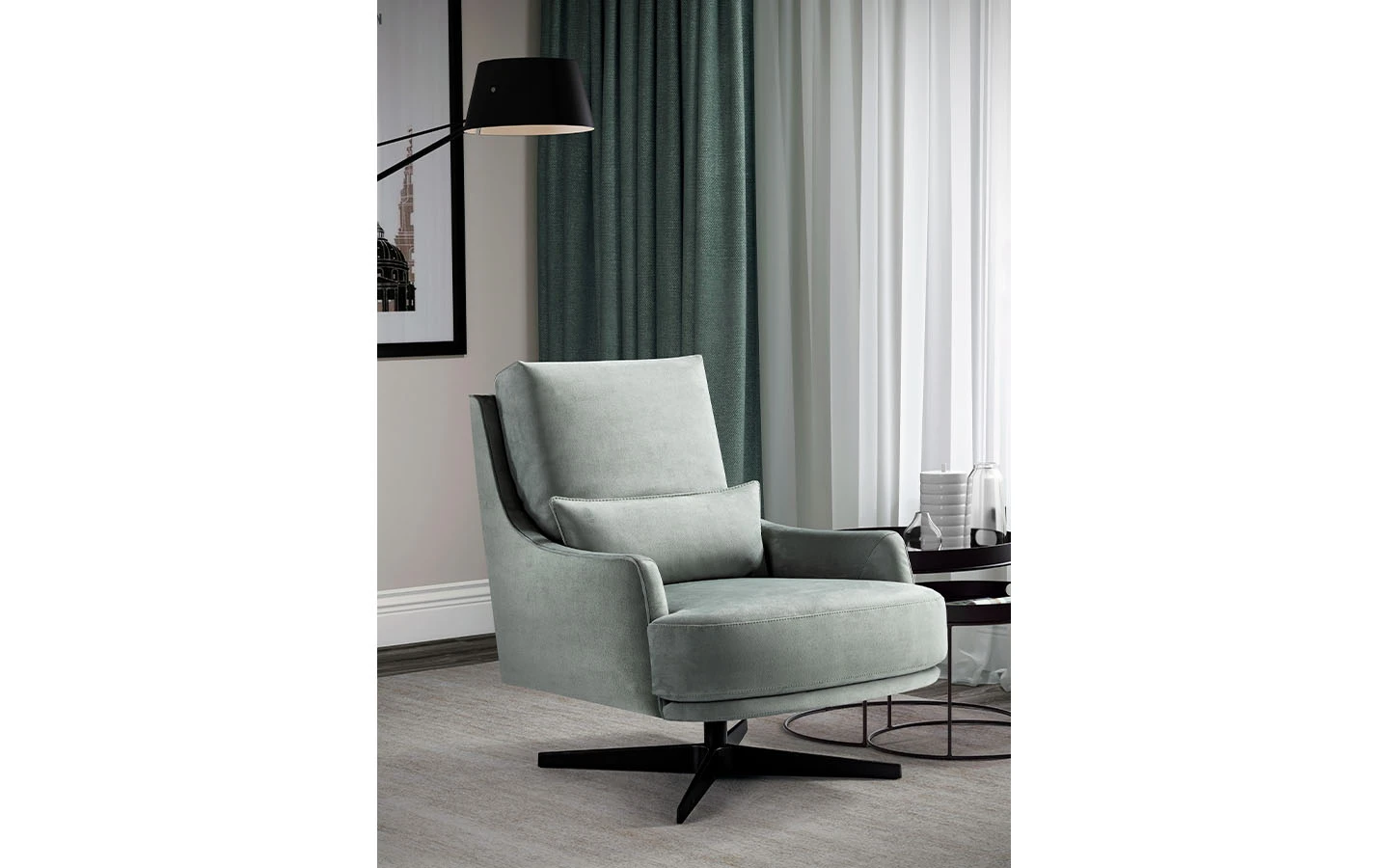 FILICUDI е италианско кресло от колекцията на италианския производител Franco Ferri. Креслото FILICUDI може да бъде тапицирано в дамаска, еко кожа или кожа – материал и цвят по избор на клиента. Основата на креслото се предлага в три варианта: метални крака, дървени крака или въртяща се метална основа – финиши по избор на клиента. Цената на креслото се формира на база на избора на тапицерия и вид и финиш на основата.