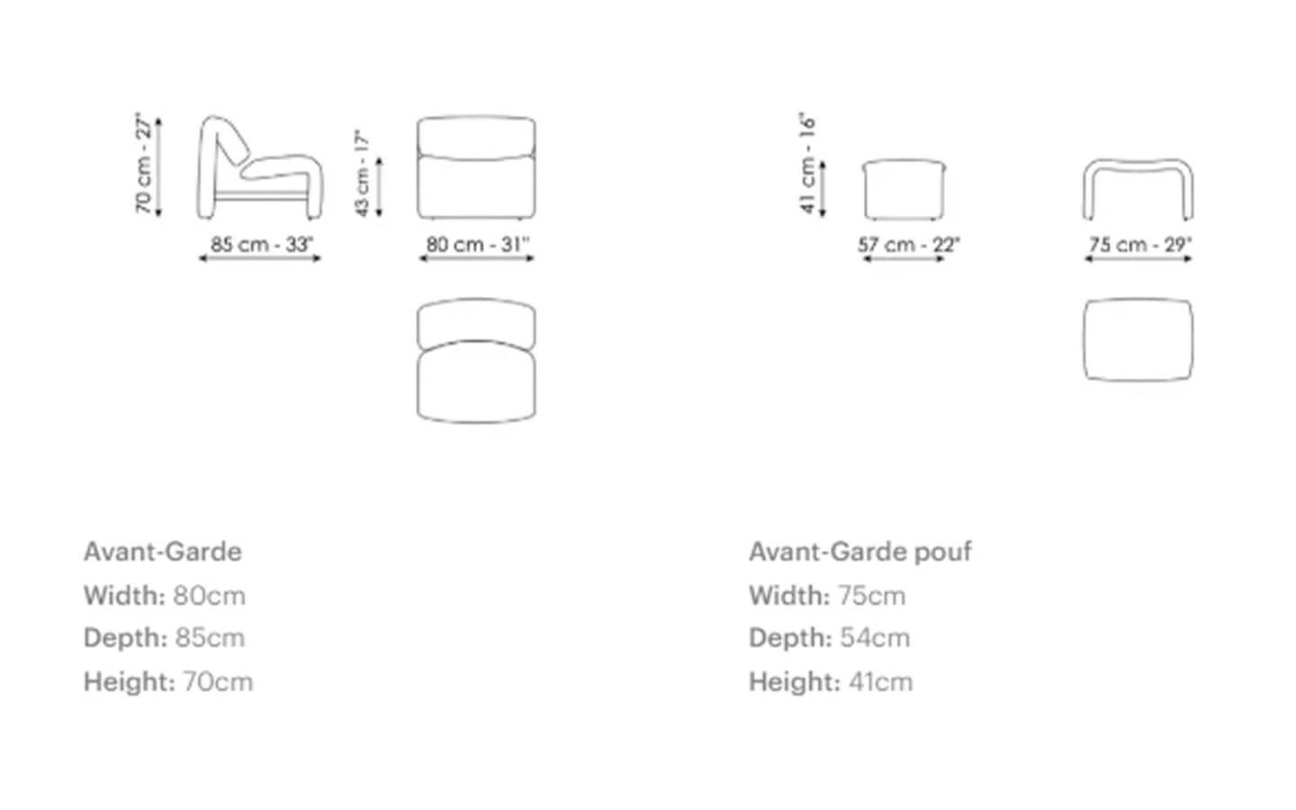 AVANT-GARDE е кресло с табуретка от колекцията на италианския производител Bonaldo. Структурен елемент, изработен от метал – финиш по избор. Креслото и табуретката могат да бъдат тапицирани в дамаска, кожа или еко кожа – материал и цвят по избор. Цената на креслото се формира на база на избора на тапицерия и финиш на метала за структурния елемент.