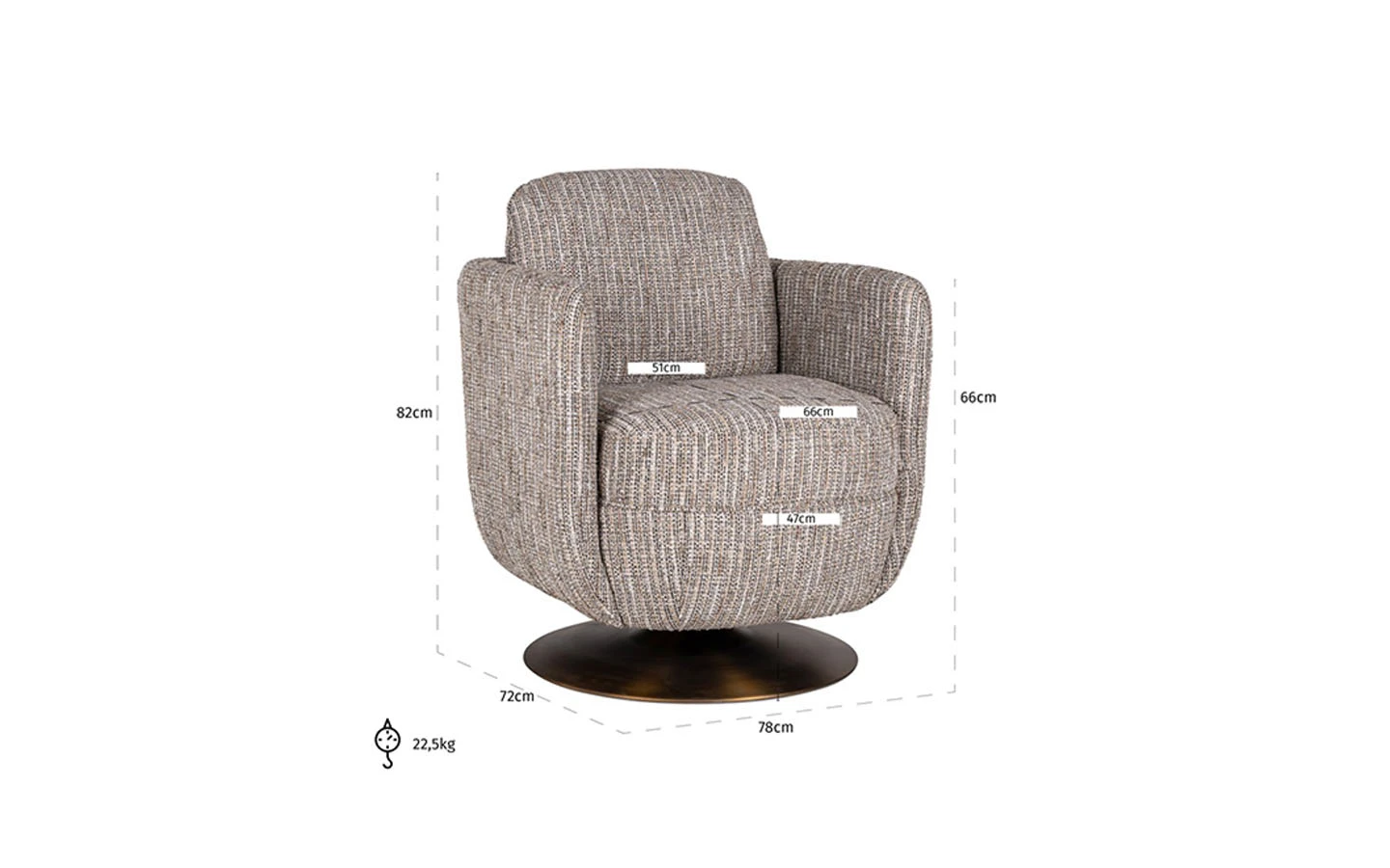 Креслото TURNER BEIGE COCO на Richmond Interiors е елегантно и комфортно решение, което впечатлява със своя изчистен силует и топъл, неутрален нюанс. Тапицирано с мека на допир и устойчива материя, креслото създава усещане за уют и стилен минимализъм. Въртящата се основа добавя функционалност и лекота, като го прави идеално за динамично всекидневно ползване – било то в хола, офис зона или зона за отдих. Изчистеният му дизайн с метална основа подчертава съвременното му излъчване, а бежовият цвят го прави универсално допълнение към различни интериорни стилове. TURNER е кресло, което съчетава дискретен лукс, практичност и визуален комфорт – отличен избор за интериори с изтънчен вкус.