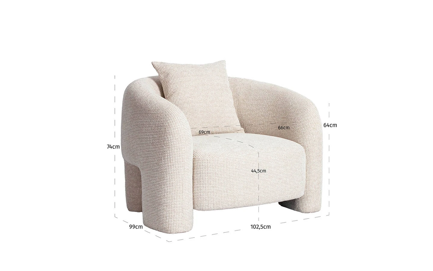 TUSCANY BEIGE BLOCKWEAVE е кресло от RICHMOND INTERIORS, което се отличава със спокойна и изискана визия, съчетаваща комфорт и непреходен стил. Тапицерията в нюанс beige blockweave създава топла и естествена основа, която придава усещане за уют и лесно се вписва в различни интериорни концепции. Формата е удобна и добре балансирана, като насърчава релакса и прави креслото подходящо както за ежедневна употреба, така и като стилен акцент в пространството. Дизайнът е изчистен и елегантен, което позволява лесно комбиниране с други мебели и материали. Конструкцията е стабилна и изработена от качествени материали, гарантиращи дълготрайност и устойчивост, превръщайки TUSCANY BEIGE BLOCKWEAVE в универсално и естетически издържано решение за съвременния интериор.