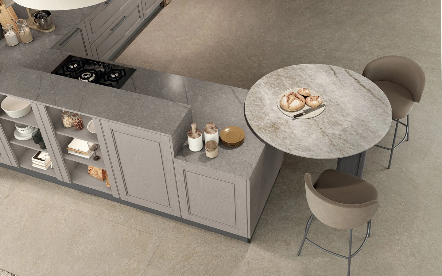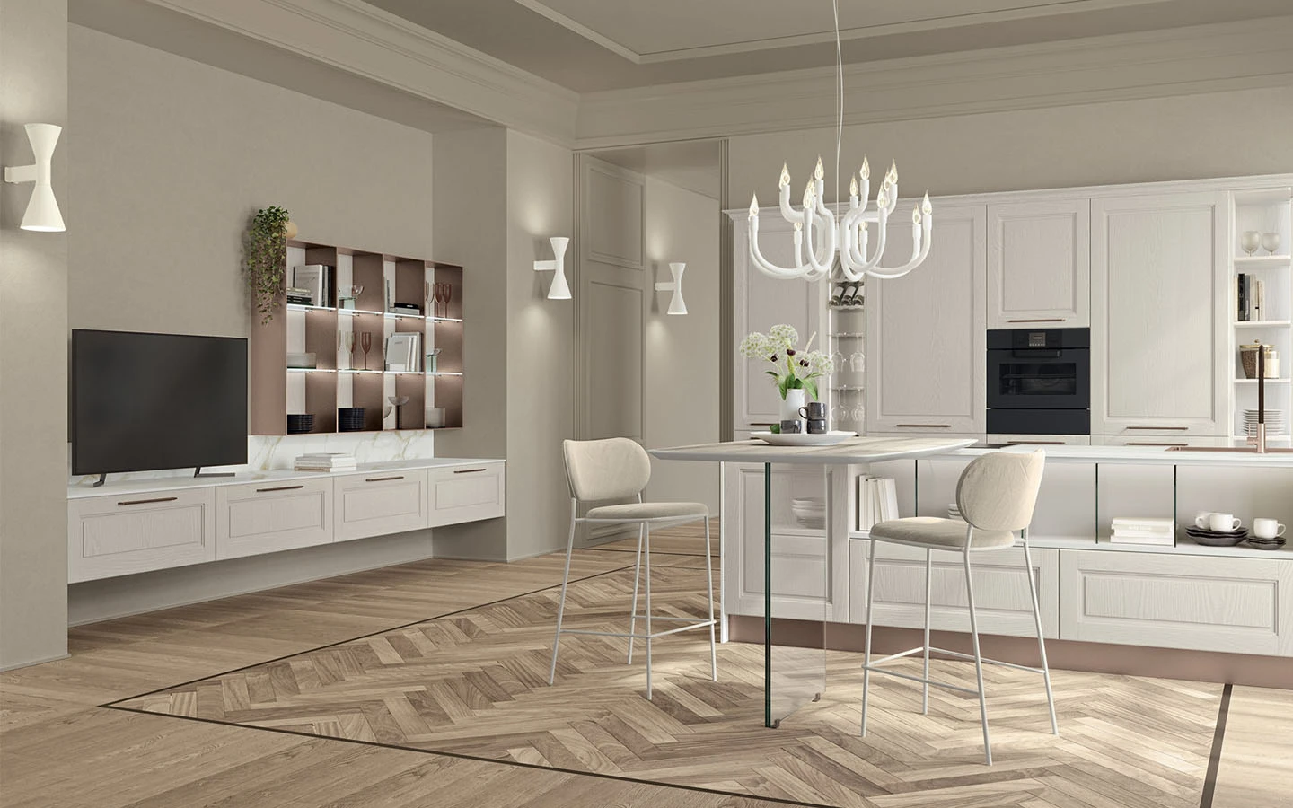 С възможностите на колекцията AGNESE STYLE, нашият екип може да удовлетвори естетичните предпочитания на всеки един клиент и да ги адаптира към всяко едно пространство, предназначено както за кухня, така и за дневна.