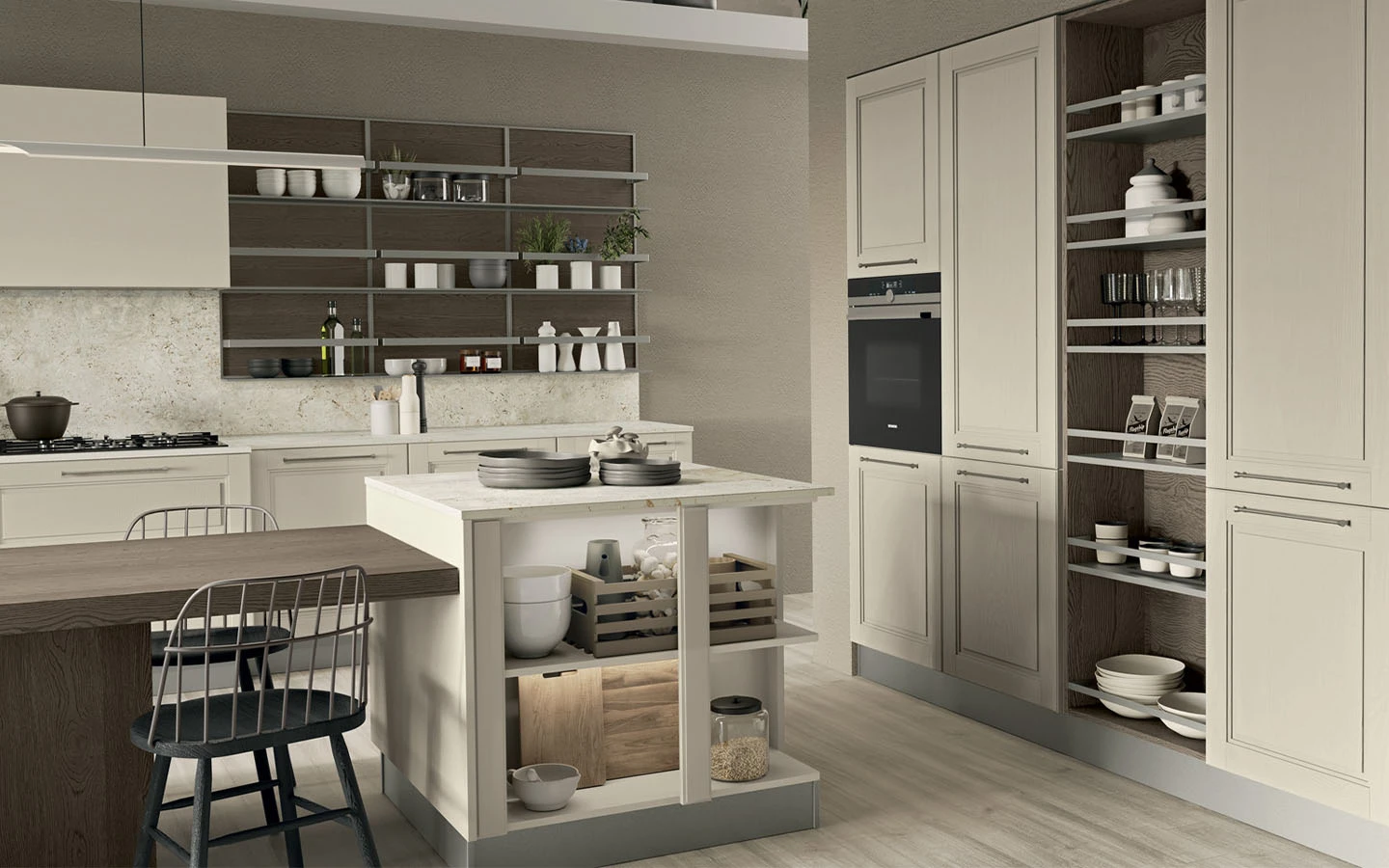 Кухнята AGNESE STYLE от италианския производител LUBE Cucine е съвършено съчетание между класическа естетика и съвременна функционалност. Тя придава на дома усещане за уют и елегантност, като същевременно предлага модерни решения за ежедневна употреба.