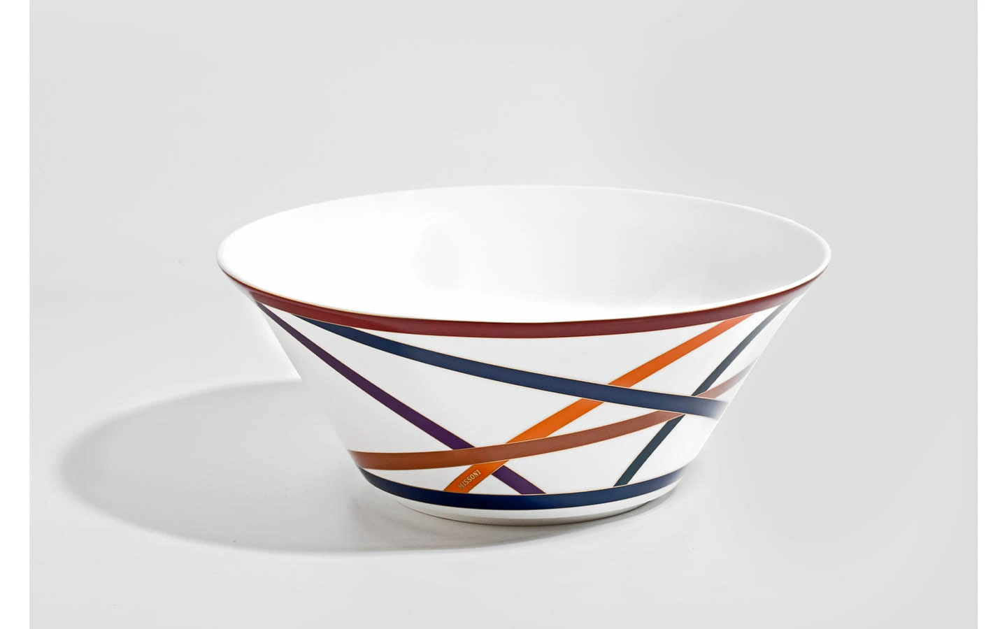 Купа за салата от колекцията Nastri Multicolor от Missoni Home. Тази зашеметяваща колекция от фин костен порцелан е характерна и цветна – всичко, което бихте очаквали от серия на Missoni Home. Колекцията се характеризира с хармония, класика и елегантност.