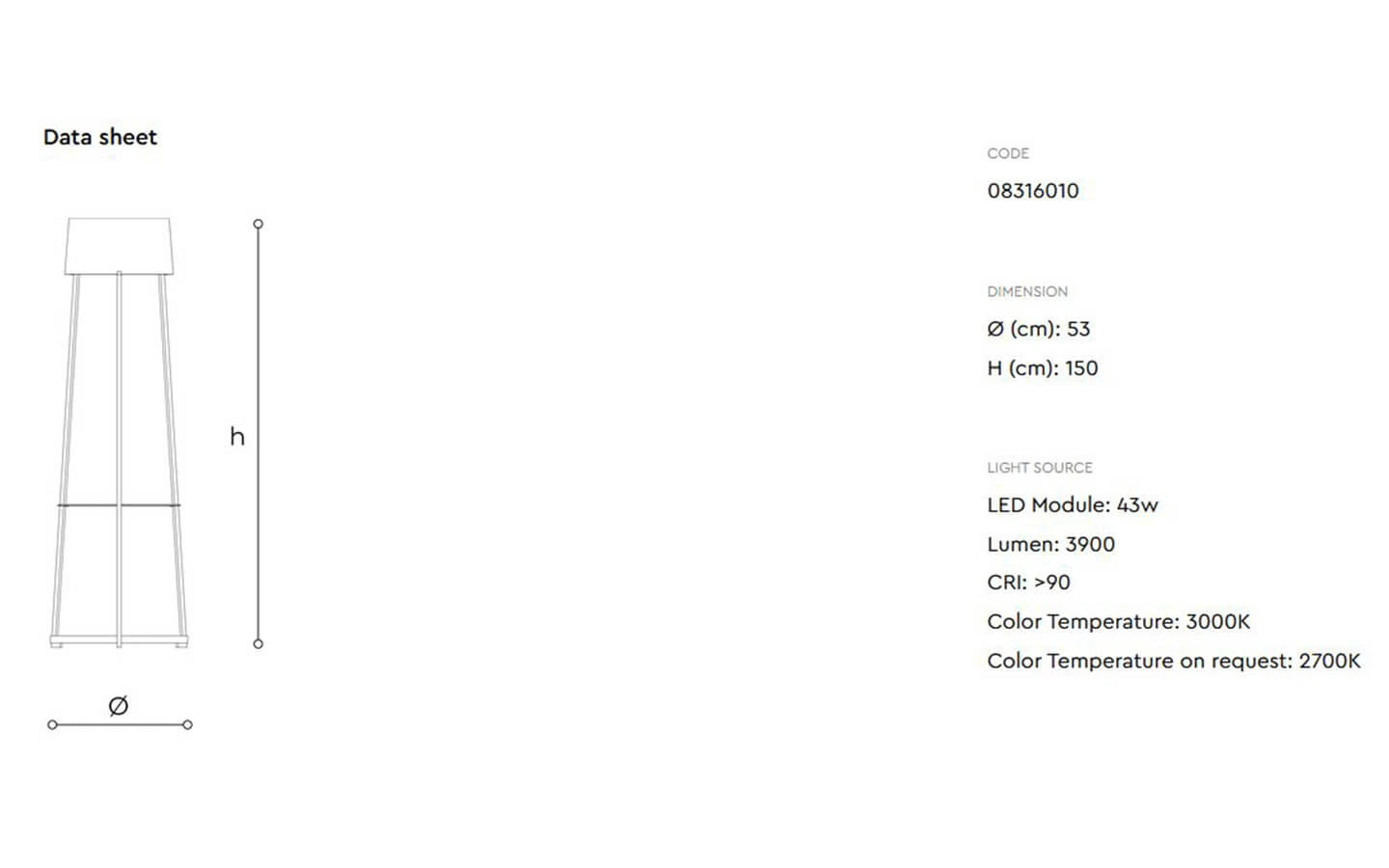 Лампионът ANTEA на ITALAMP впечатлява със съвременен силует, в който светлината и формата се преплитат в хармоничен дизайнерски баланс. Изработен от метал, моделът разполага с два елегантни рафта от опушено стъкло и абажур от ръчно духано стъкло с титаниев ефект, който придава мек, полупрозрачен блясък. С диаметър 53 см и височина 150 см, ANTEA е създаден не само като осветително тяло, но и като функционален елемент в интериора. Оборудван е с два вградени LED източника, които излъчват топла и равномерна светлина, подходяща за зони за почивка, четене или атмосферен акцент. Проектиран от Ilenia Viscardi и част от колекцията Generale, лампионът е произведен в Италия и носи в себе си характерната за ITALAMP прецизност, внимание към детайла и изтънчен подход към светлината като елемент от дизайна.