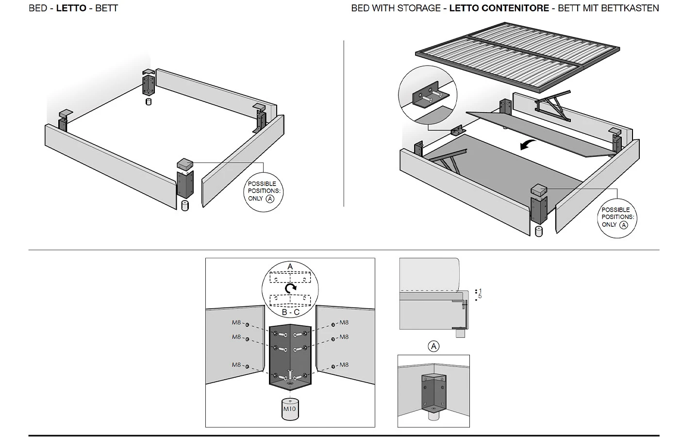 Посочената цена е за легло за матрак см. 160/200, тапицирано в начална категория кожа и без механизъм с контейнер.
