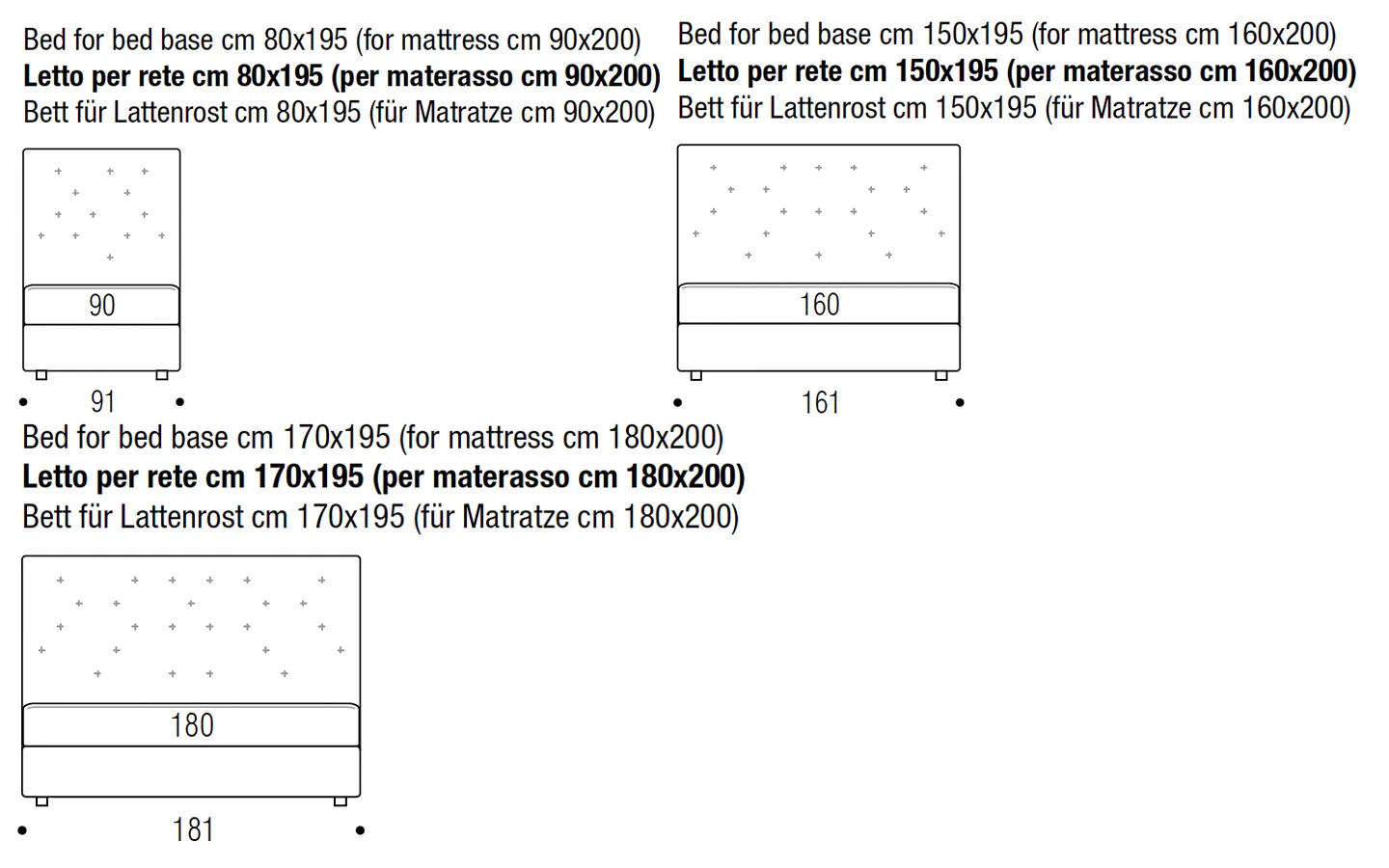 | Размер на матрака | см. 90/200, см. 160/200, см. 180/200 |