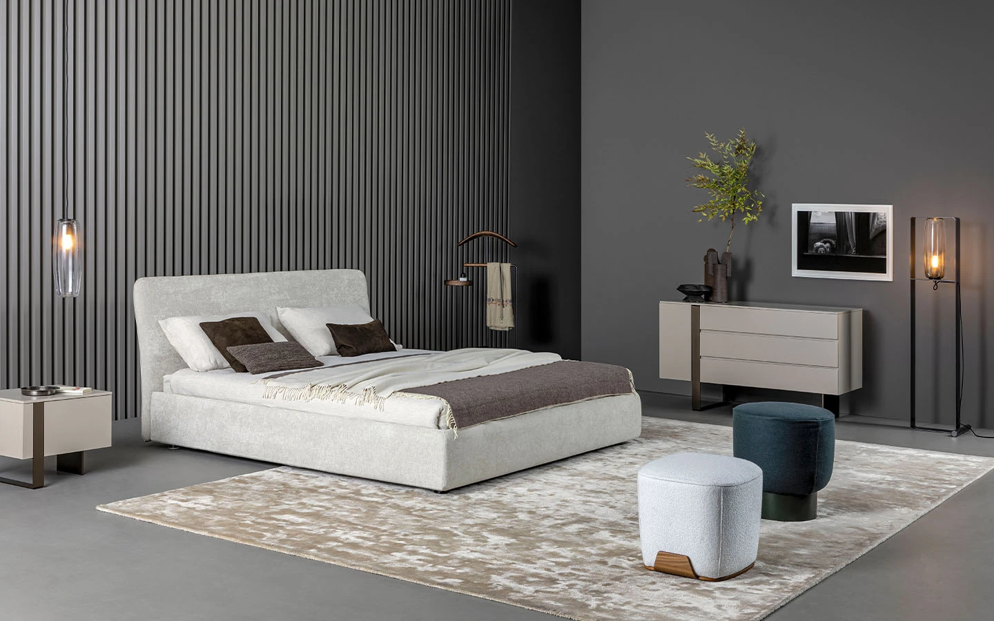 Двойното легло TONIGHT е с линеен, строг, универсален и съвременен дизайн, който позволява много възможности за персонализиране. Спалнята е и с напълно свалящи се калъфи от плат, кожа или еко кожа, които са налични в широк диапазон от материали и цветове. Вариантът TONIGHT OPEN предлага допълнително пространство с включен механизъм с контейнер, докато версията TONIGHT CHARME има табла, декорирана с вертикален капитонаж, който подчертава нейната форма. Предлага се и версия TONIGHT AIR с метални крака, които повдигат рамката на леглото по-високо от земята. Допълнителна възможност за персонализация се предоставя за версиите TONIGHT и TONIGHT OPEN чрез декоративния кант на таблата и рамката на леглото, който може да бъде както в съответстващ, така и в контрастен цвят спрямо основната тапицерия.