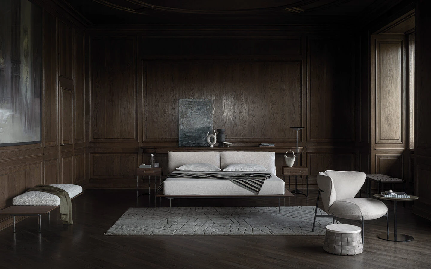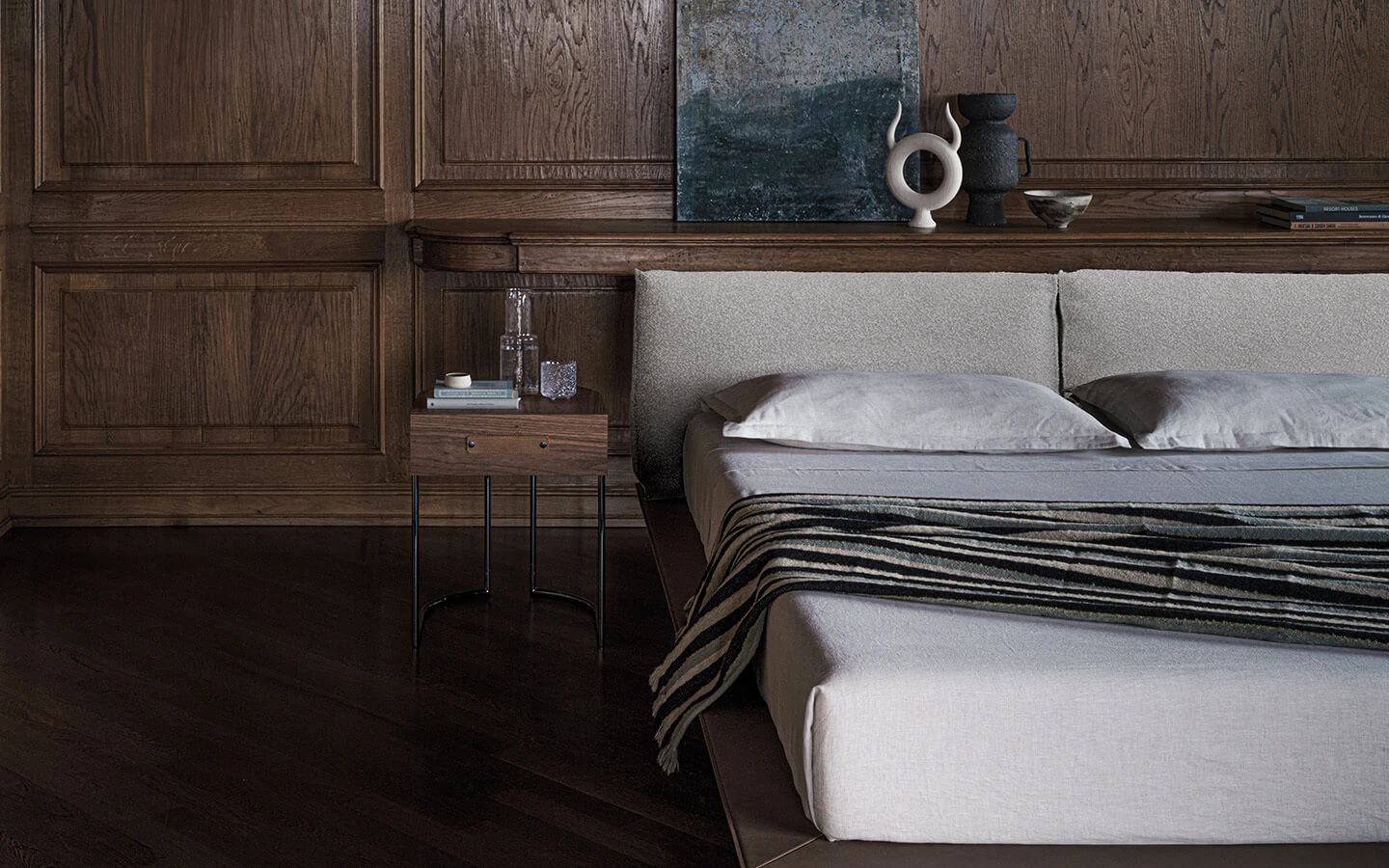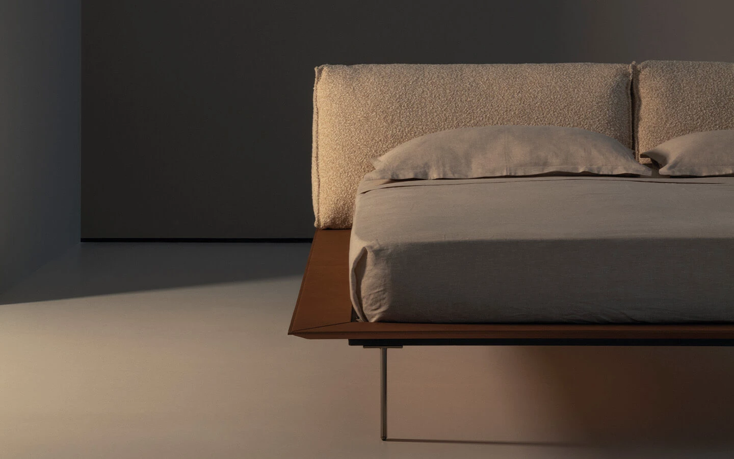 VOGUE CUOIO от CIERRE е луксозно тапицирано легло с изразен характер и елегантна, съвременна визия, в която кожата играе водеща роля. Моделът се отличава с внушителна табла с прецизно оформени шевове и изчистени линии, които подчертават високото ниво на майсторство и вниманието към детайла. Дизайнът съчетава модерна строгост и изтънчен лукс, превръщайки леглото в силен акцент в спалното пространство. Комфортната, добре подплатена конструкция осигурява отлична опора както по време на сън, така и при облягане, като създава усещане за стабилност и уют. VOGUE CUOIO предлага възможности за персонализация с избор на кожи и цветове, както и различни размери, което позволява адаптиране към индивидуалния стил и архитектурата на интериора. Италианската изработка и високите стандарти на CIERRE гарантират дълготрайност, комфорт и неподвластна на времето естетика, подходяща за изискани и модерни спални интериори.