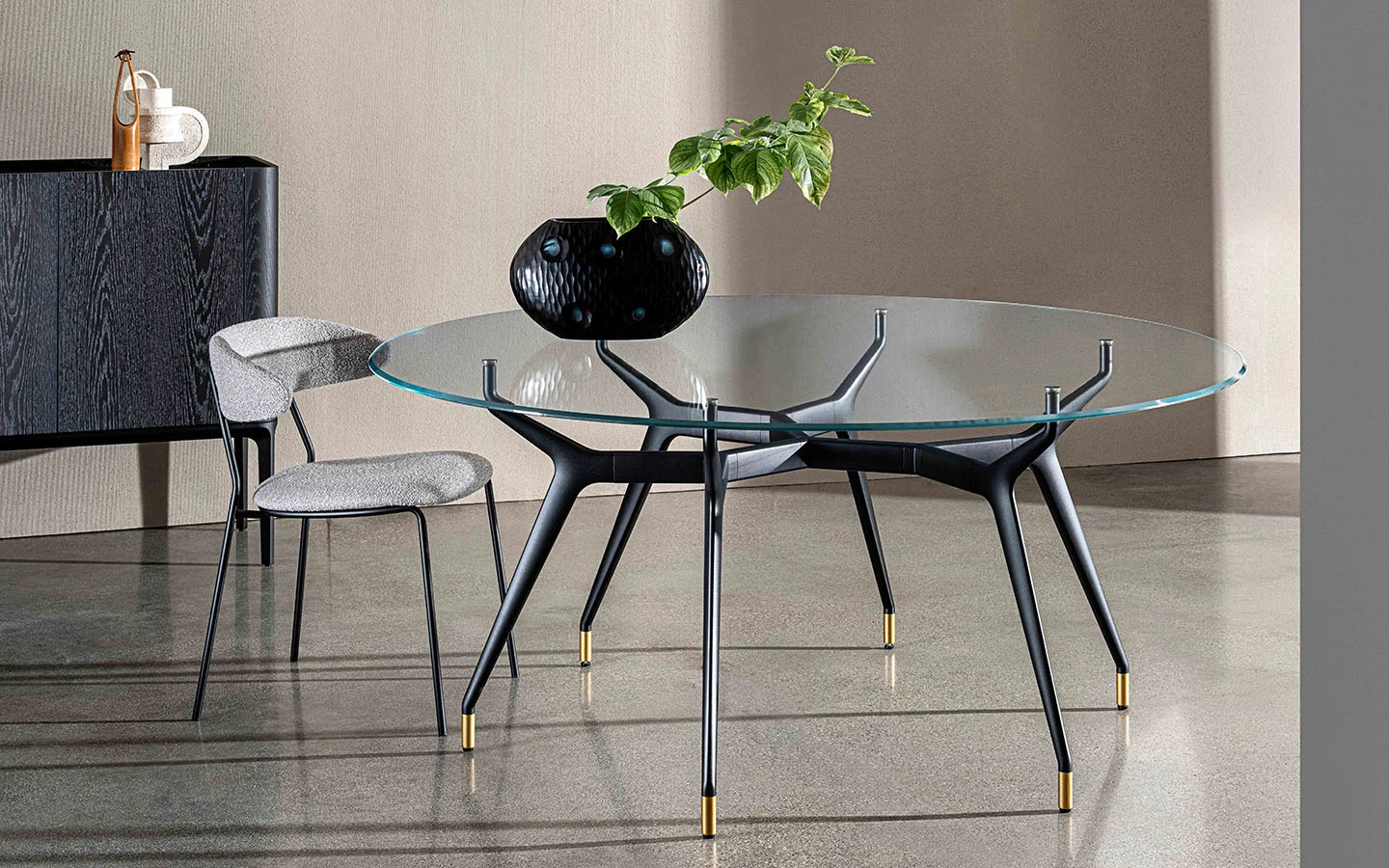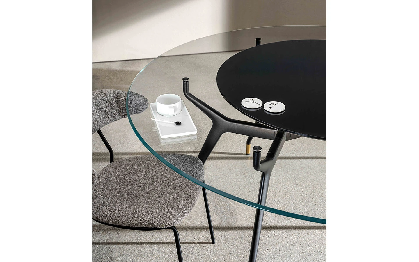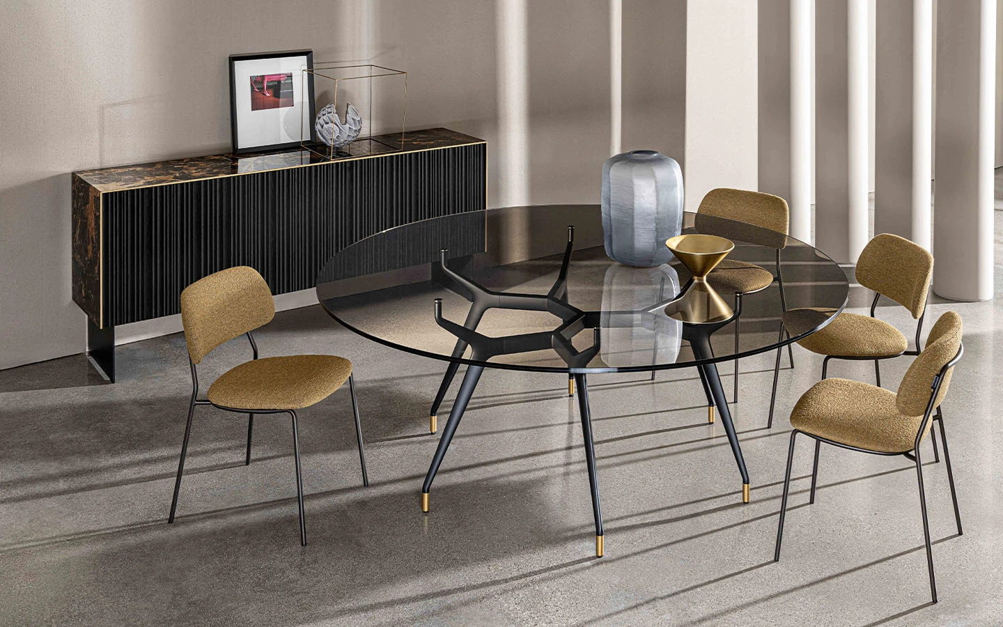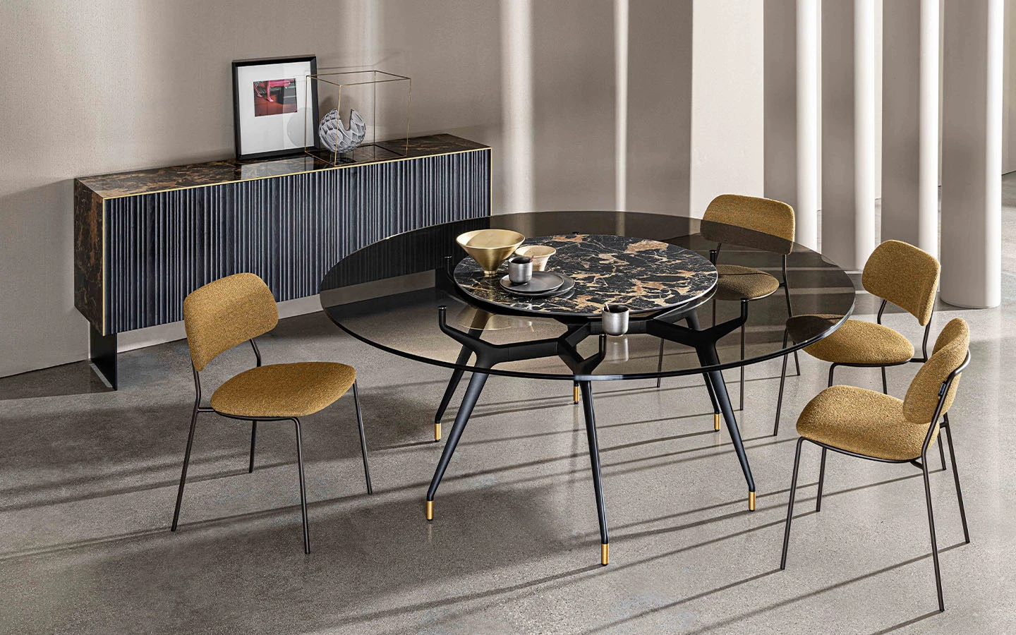 Масата ARKOS XXL от Sovet Italia е съвременна трапезарна маса, която съчетава вдъхновението от средата на миналия век с модерни дизайнерски елементи. Като допълнителна опция, масата може да бъде оборудвана с въртящ се плот тип „Lazy Susan“, наличен в различни материали и покрития, което добавя функционалност и удобство при сервиране. ARKOS XXL въплъщава ангажимента на Sovet да комбинира традиционното италианско майсторство със съвременен дизайн, създавайки продукт, който е едновременно функционален и артистично изразителен.