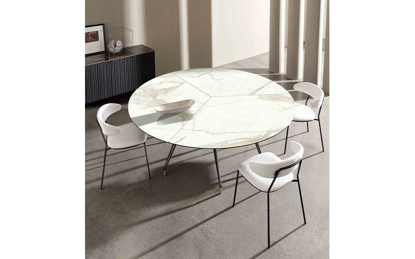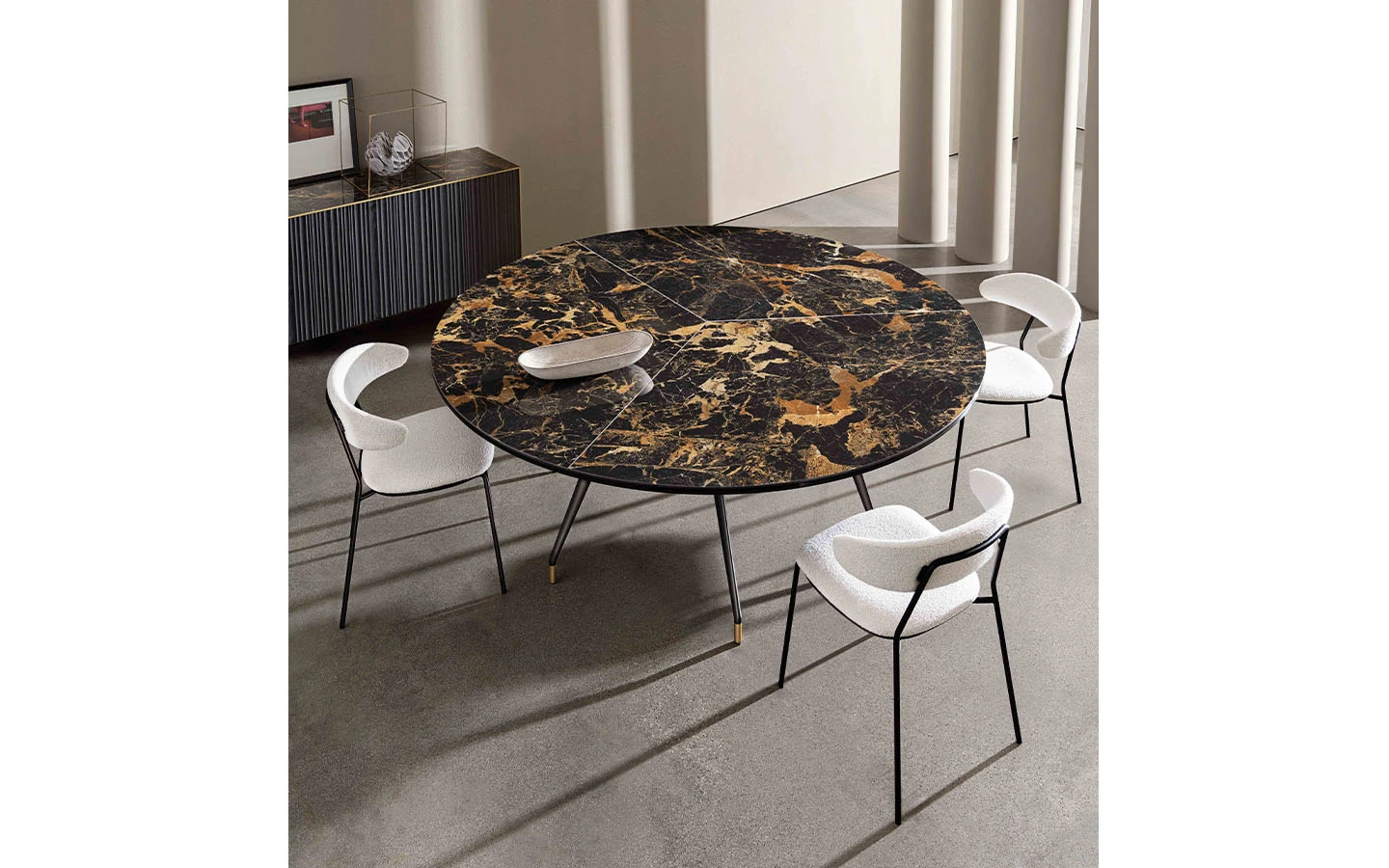 Посочената цена е за трапезарна маса с размери см. Ø 180/75H., в начална категория материал и финиш на плота и основата.