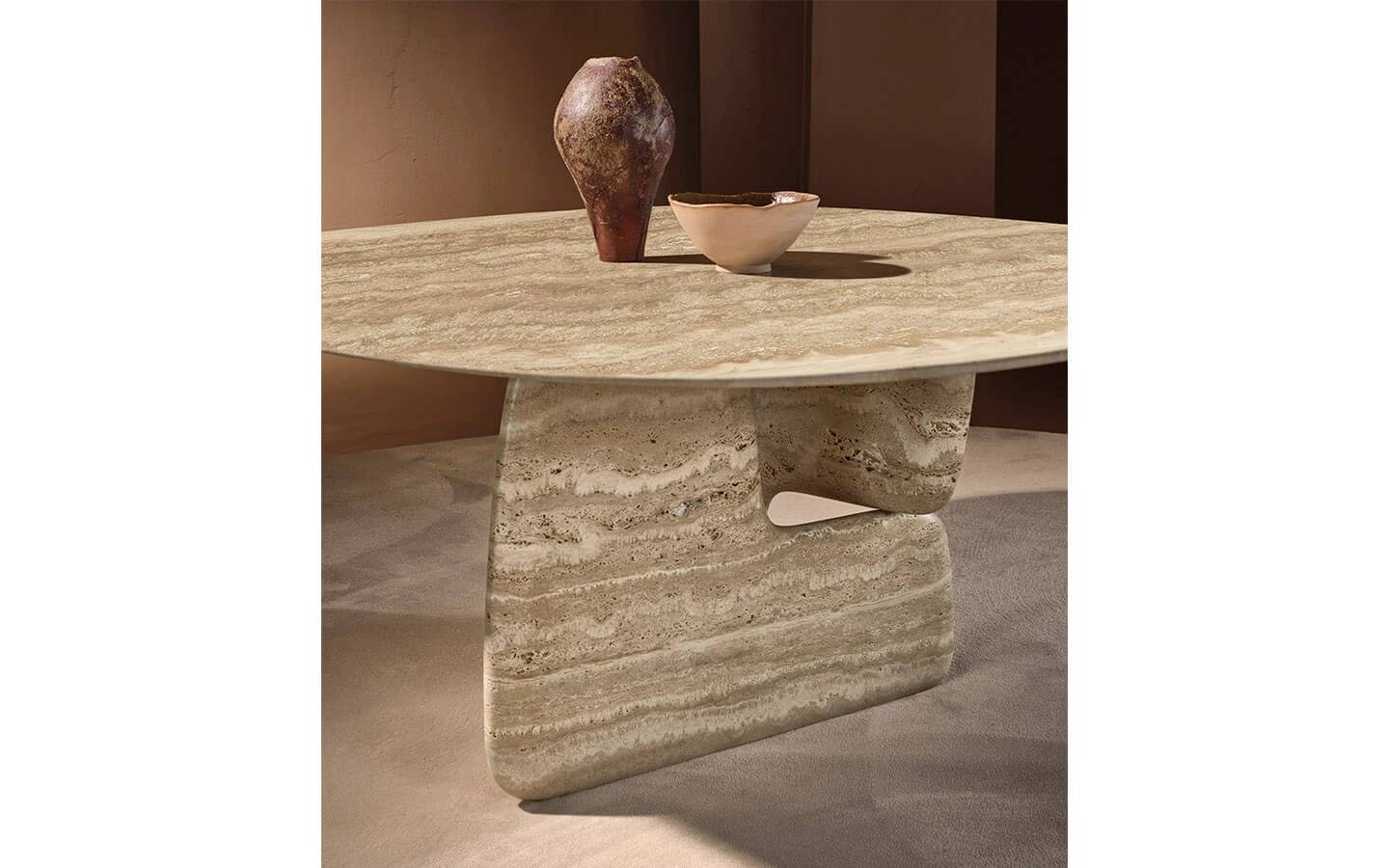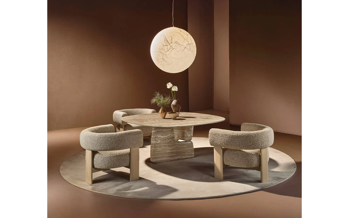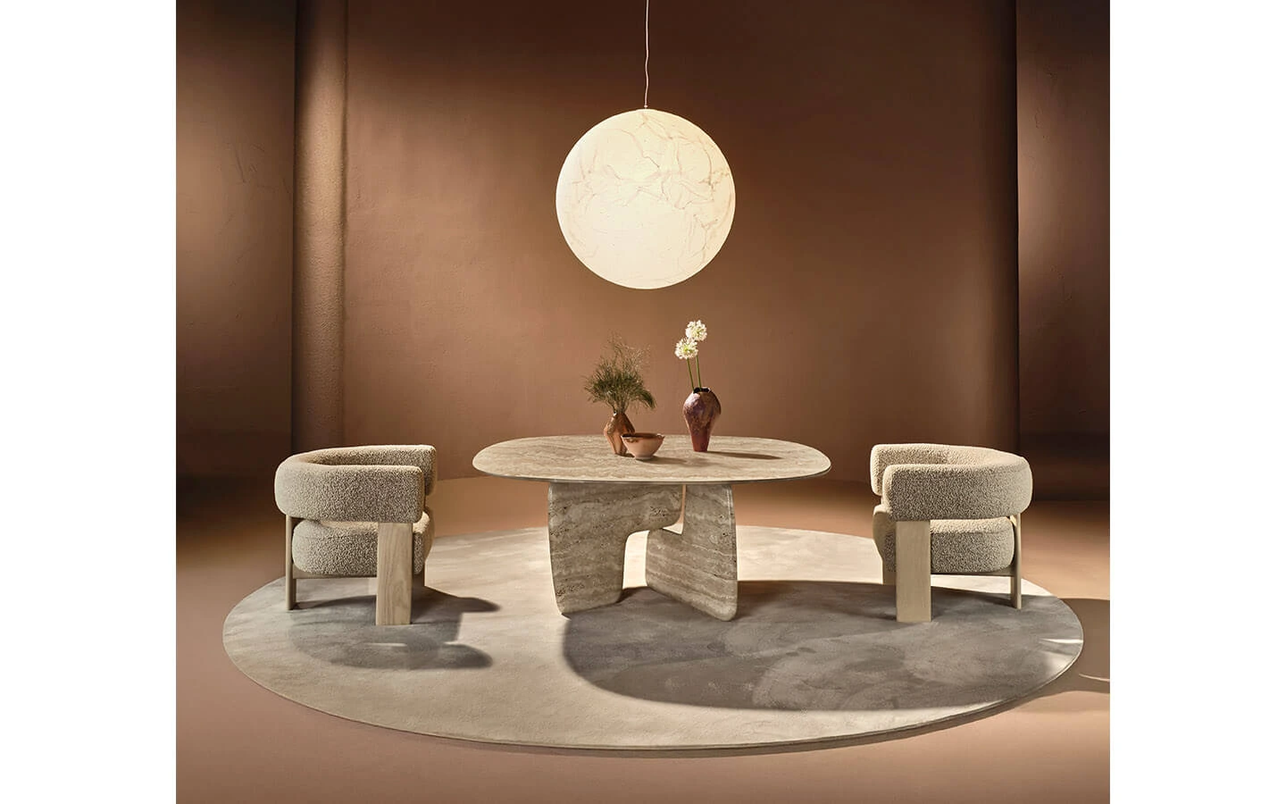 BALANCE LOUNGE от NATURE DESIGN е елегантна холна маса с ясно изразен скулптурен характер, вдъхновен от баланса в природата и хармонията между форма и обем. Дизайнът се отличава с масивна, но визуално лека основа, съставена от два симетрични, органично извити елемента, завъртяни един спрямо друг, които създават усещане за движение и стабилност едновременно. Плотът допълва композицията с изчистена геометрия и подчертава контраста между меките линии и строгата форма. Масата се предлага в различни размери и богато разнообразие от материали и финиши като дърво, мрамор, стъкло и ръчно стъкло, което позволява персонализация и лесно адаптиране към съвременни пространства, дневни зони и луксозни интериори. BALANCE LOUNGE съчетава артистичен дизайн, италианско майсторство и усещане за естествена естетика, превръщайки се в силен акцент във всяко пространство.