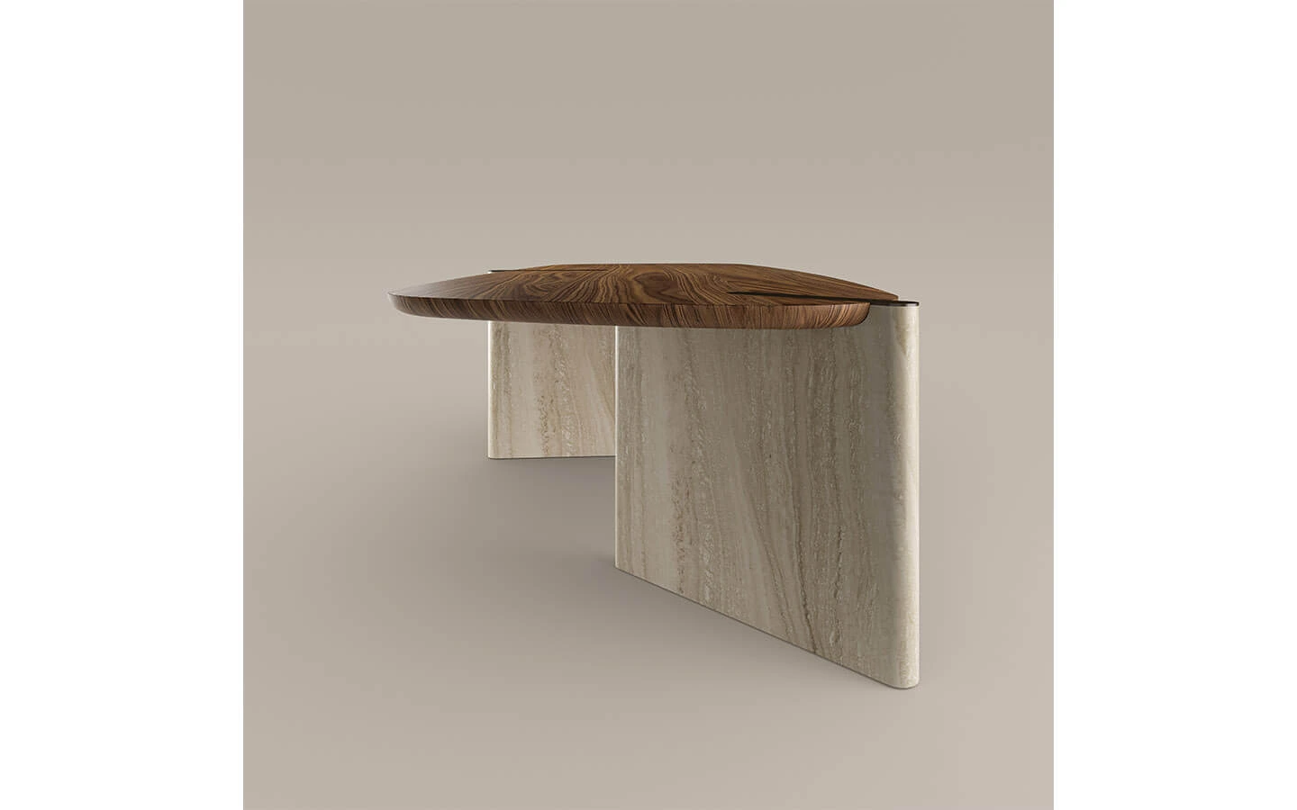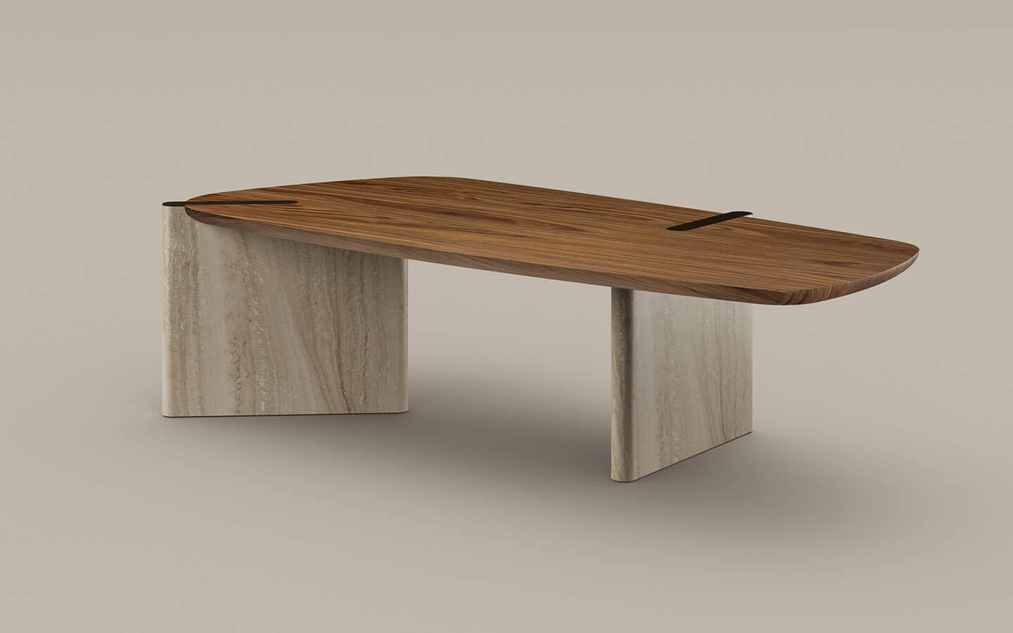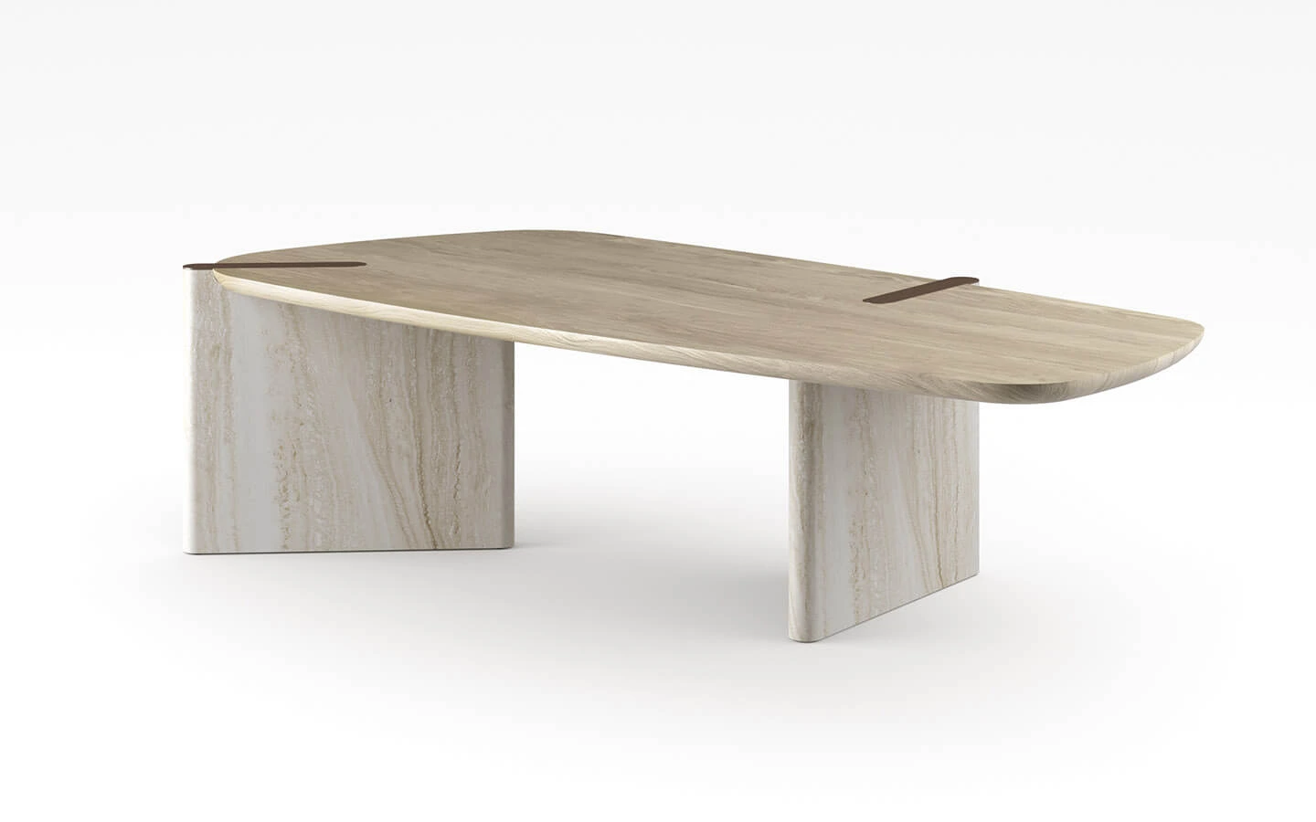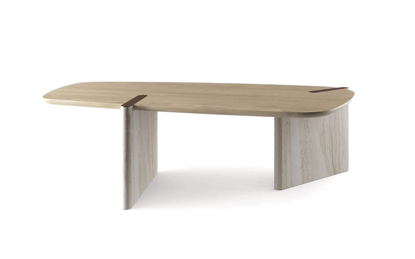 При варианта с комбинация от два материала, трапезната маса е с плот, изработен от фурнировано дърво – финиш по избор. Основата може да бъде изработена от мрамор или дърво в цвят – материал и финиш по избор. Вложките от метал в плота на масата могат да бъдат във финиш Bronze или Lead.